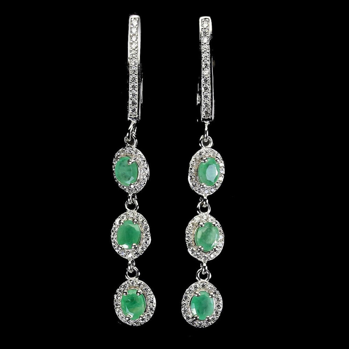 925 STERLING SILVER;PLATE-14K WHITE GOLD;MAIN STONE-EMERALD;TOTAL WEIGHT-4.48 GRAM (TOTAL WEIGHT OF SILVER + STONE)DIMENSION-* STONE 4.0 X 3.0 MM.;* FACE EARRINGS -48.0 X 6.0 MM.;MAIN STONE SHAPE-OVAL CUT;MAIN STONE COLOR-GREEN;TREATMENT-UNHEATED;ORIGIN-Colombia;HARDNESS-7.5 - 8.0;