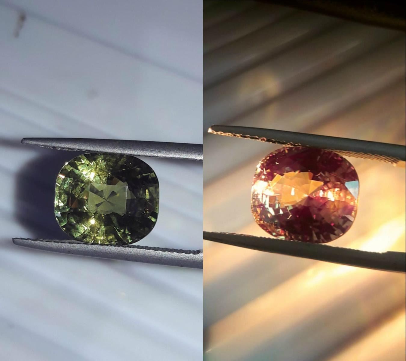 Natural Cushion Alexandrite 6.05 Ct.....classic cushion cut, VS clarity, Origin - Ceylon; Color change from green to Orangy-pink as stated by GRS lab in the certificate.