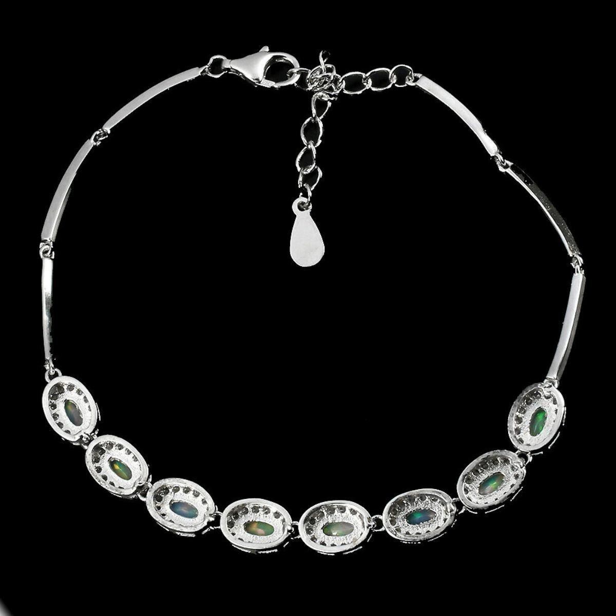 925 STERLING SILVER;PLATE-14K WHITE GOLDLENGTH (INCHES)7;MAIN STONE-FIRE OPAL;TOTAL WEIGHT-6.32 GRAM (TOTAL WEIGHT OF SILVER + STONE)DIMENSION-* STONE 5.0 X 3.0 MM. * CZ 1.0 MM. * FACE BRACELET 70.0 X 6.0 MM.;MAIN STONE SHAPE-OVAL CUT;MAIN STONE COLOR-HOT RAINBOW LUSTER;CLARITY/GRADE-IF TO VVS;TREATMENT-UNHEATED;ORIGIN-ETHIOPIA;HARDNESS-5.5 - 6.5;