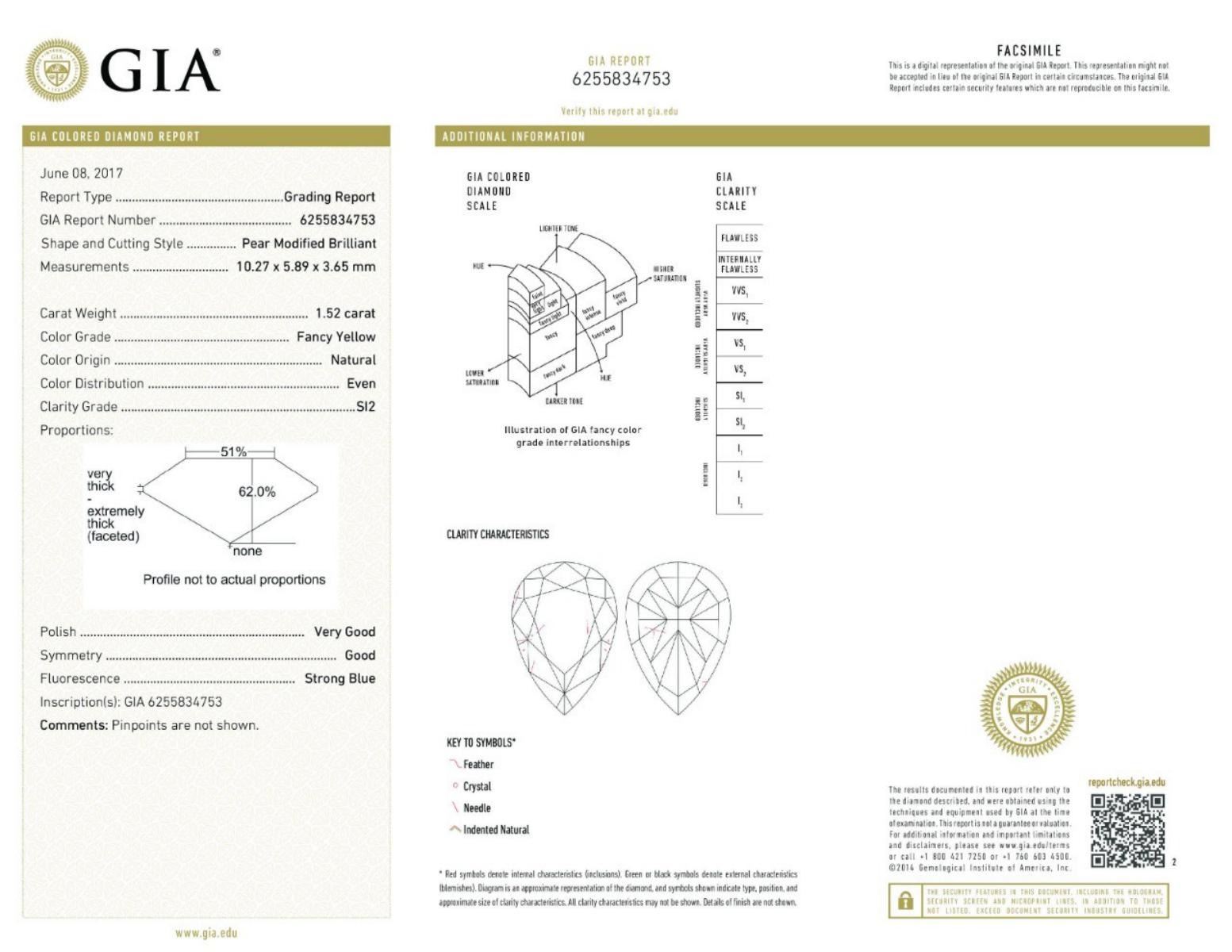 Natural Untreated Fancy Yellow Diamond 1.52 Cts; Size 10.27 x 5.89 MM - GIA Certified......pear shape......Natural untreated earth mined.
