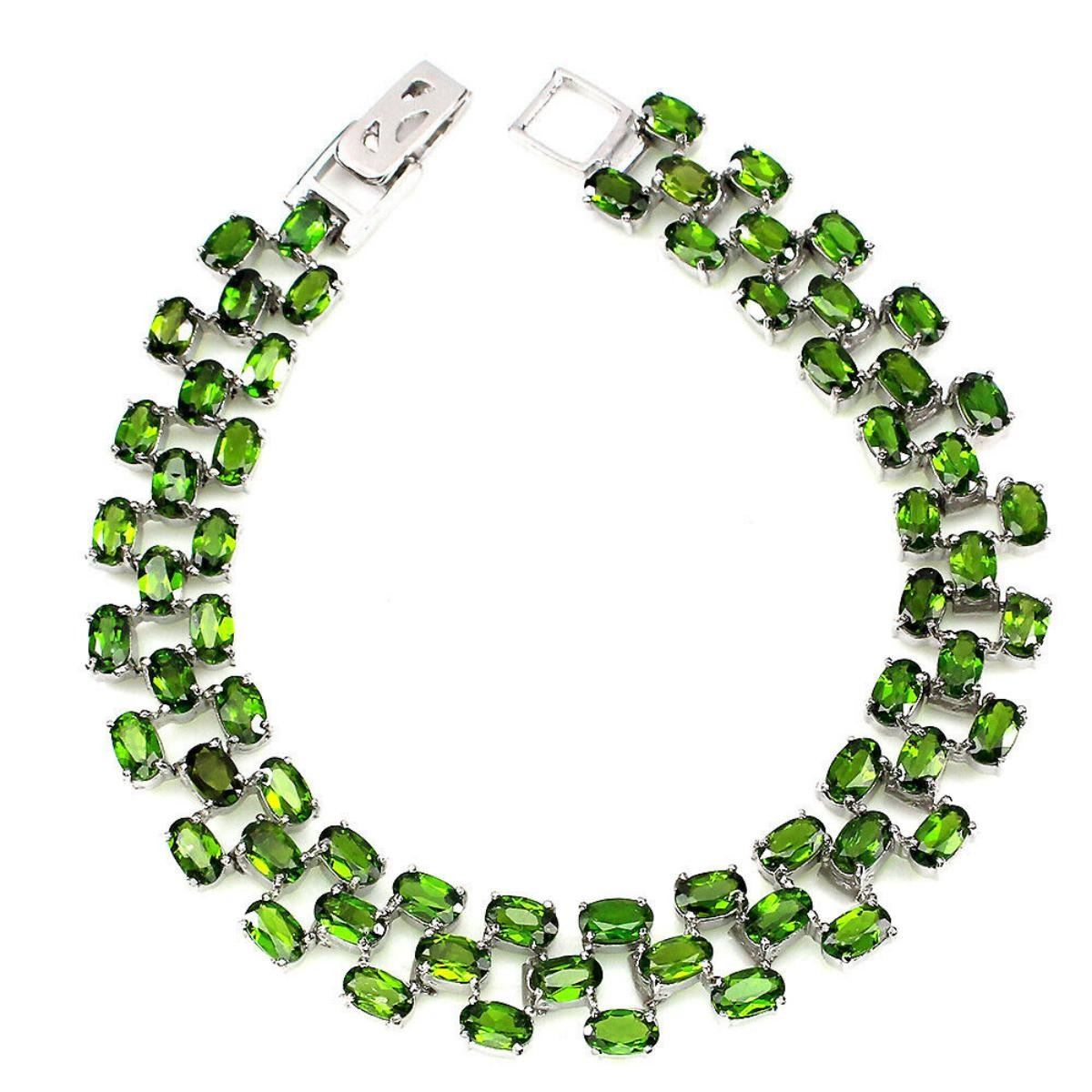 925 STERLING SILVER;PLATE-14K WHITE GOLD;LENGTH (INCHES)7.5;MAIN STONE-CHROME DIOPSIDETOTAL WEIGHT-18.4 GRAM (TOTAL WEIGHT OF SILVER + STONE)DIMENSION-* STONE 5.0 X 3.0 MM. * LENGTH 7.5 INCHES.* FACE BRACELET 165.0 X 12.0 MM.;MAIN STONE SHAPE-OVAL CUT;MAIN STONE COLOR-TOP RICH GREEN;CLARITY/GRADE-IF TO VVS;;LUSTER-PRECIOUS;TREATMENT-UNHEATED;ORIGIN-RUSSIA;HARDNESS-5.0 - 5.5;