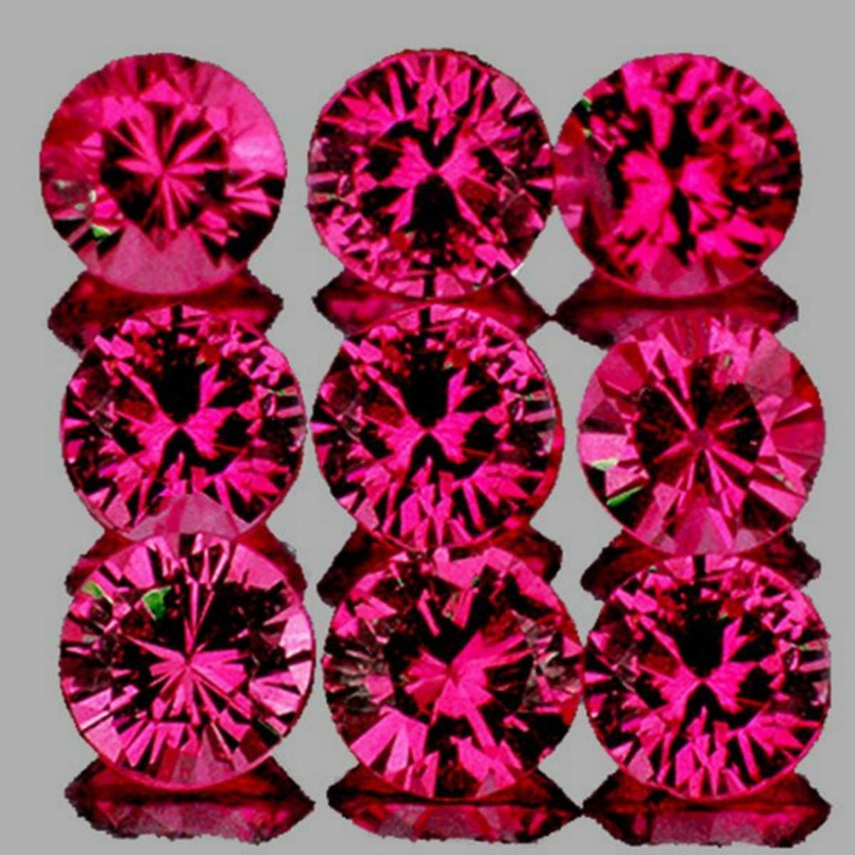 Natural Ruby (Earthly Mined)SIZE ( L x W x D ) : 2.70 mm;COLOR : Pink Red AAA Color;SHAPE : Round Machine Cut;QUANTITY : 9 pieces;LUSTER : Extreme Brilliancy;CLARITY : Flawless-VVS;HARDNESS : 9;ORIGIN : Mozambique; TREATMENT :Unheated/Untreated 100% Natural;