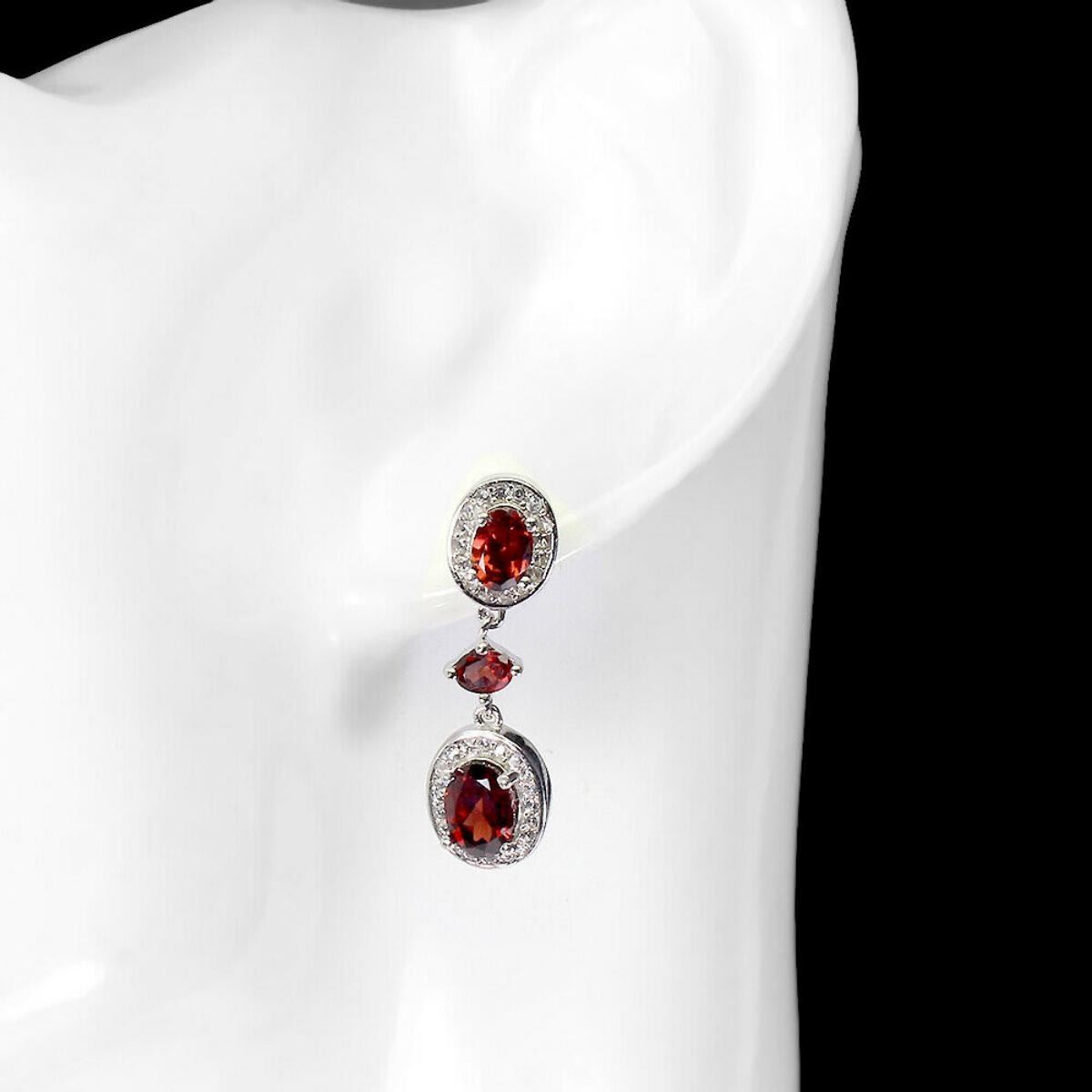 925 STERLING SILVER;PLATE-14K WHITE GOLD;MAIN STONE-MOZAMBIQUE GARNET;TOTAL WEIGHT-4.51 GRAM (TOTAL WEIGHT OF SILVER + STONE)DIMENSION-* STONE 4.0 X 3.0 TO 7.0 X 5.0 MM. * CZ 1.0 MM. * FACE EARRINGS -28.0 X 9.0 MM.;MAIN STONE SHAPE-OVAL CUT;MAIN STONE COLOR- REDDISH;CLARITY/GRADE-IF;TREATMENT-UNHEATED;ORIGIN--AfricaHardness-7.0 - 7.5;