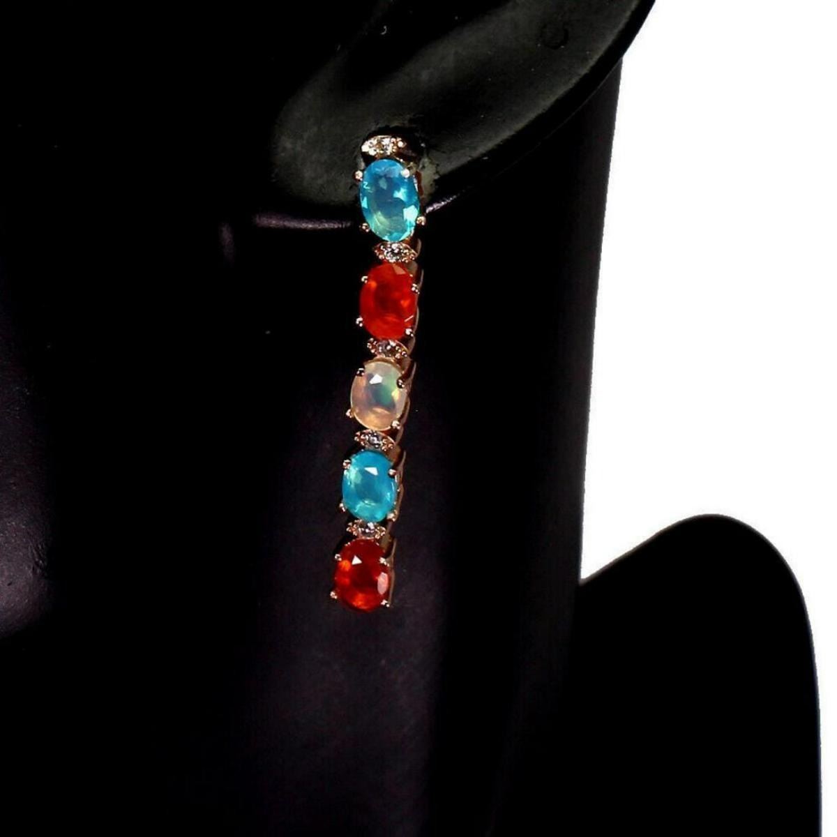925 STERLING SILVER;;PLATE-14K ROSE GOLDMAIN STONE-FIRE OPAL;OTHER GEMS--BLUE FIRE OPAL, CUBIC ZIRCONIA, ORANGE FIRE OPAL;TOTAL WEIGHT-4.51 GRAM (TOTAL WEIGHT OF SILVER + STONE)DIMENSION* STONE 6.0 X 4.0 MM. * CZ 1.5 TO 2.0 MM. * FACE EARRINGS -39.0 X 5.0 MM.;MAIN STONE SHAPE-OVAL CUT;MAIN STONE COLOR-MULTI-COLOR;CLARITY/GRADE-IF TO VVS;TREATMENT-UNHEATED;ORIGIN-ETHIOPIA;HARDNESS-5;