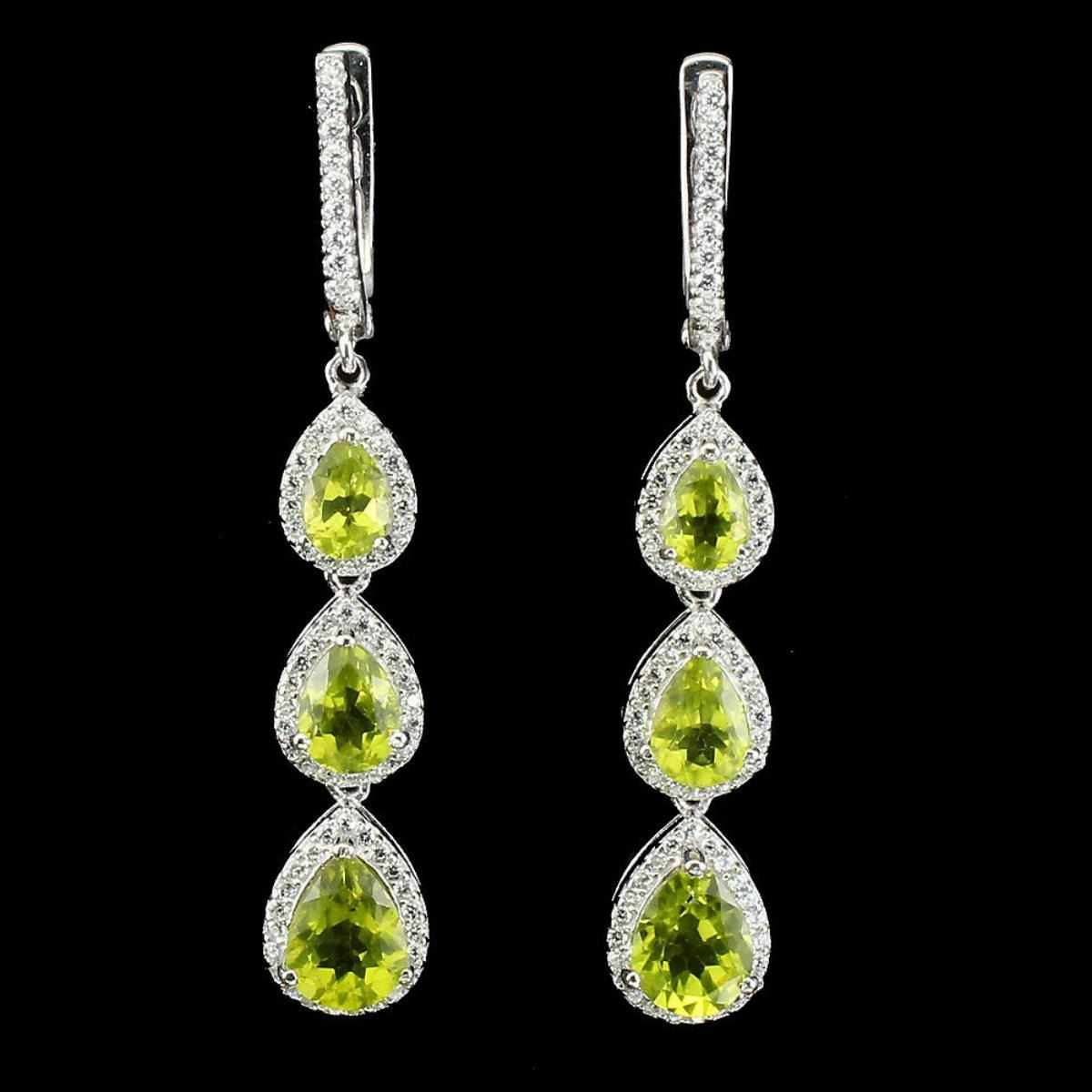 925 STERLING SILVER;PLATE-14K WHITE GOLD;MAIN STONE-PERIDOT;OTHER GEMS-CUBIC ZIRCONIA;TOTAL WEIGHT-7.74 GRAM (TOTAL WEIGHT OF SILVER + STONE)DIMENSION* STONE 6.0 X 4.0 TO 8.0 X 6.0 MM. * CZ 1.0 MM. * FACE EARRINGS -48.0 X 8.0 MM.;MAIN STONE SHAPE-PEAR CUT;MAIN STONE COLOR-TOP RICH GREEN;CLARITY/GRADE-IF TO VVS;LUSTER-GORGEOUS;TREATMENT-UNHEATED;ORIGIN-PAKISTAN;HARDNESS-6.5 - 7.0;