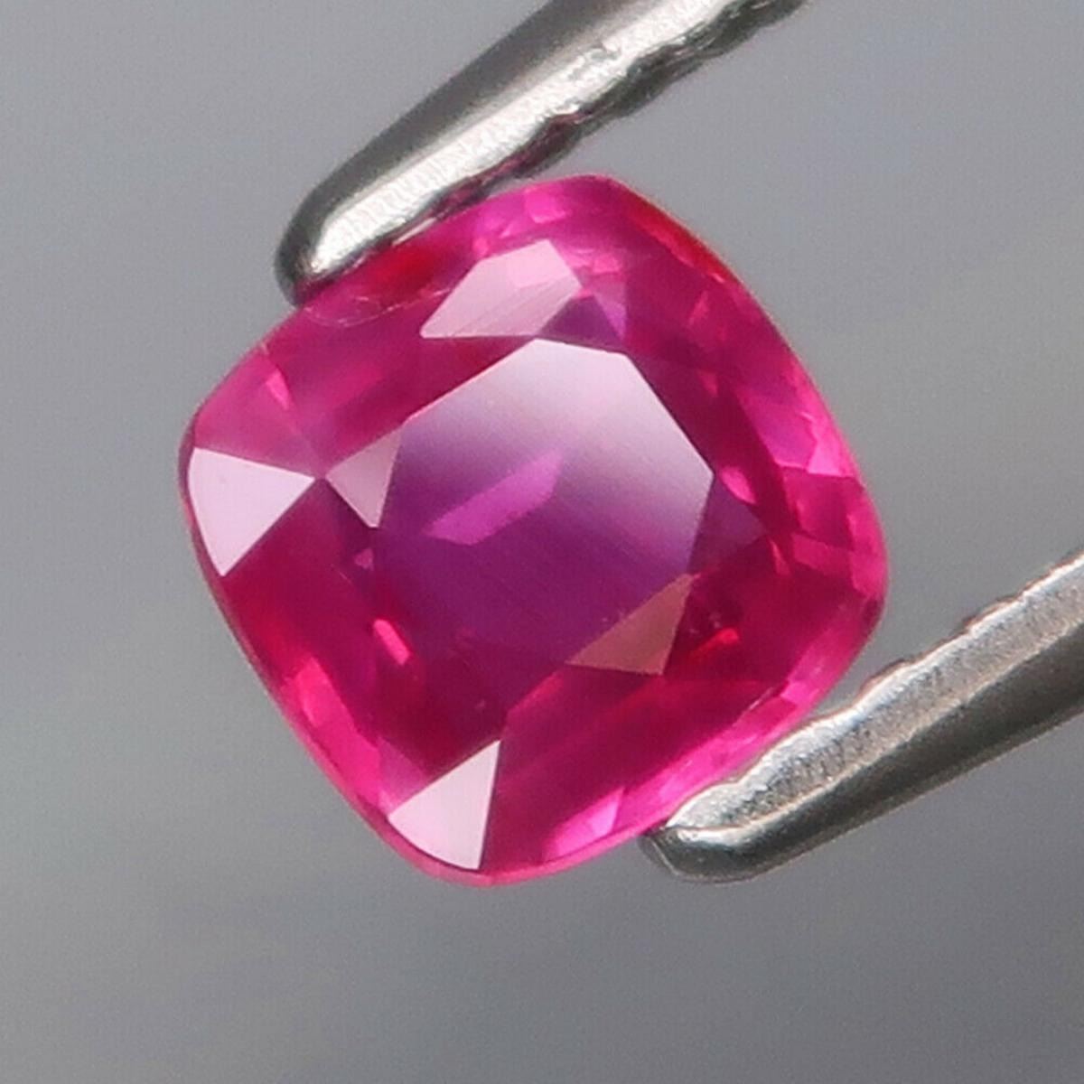 Natural Ruby Unheated; SHAPE Classic Cushion; WEIGHT 0.60 Ct. SIZE 4.7 X 4.7 X 2.6 mm; QUANTITY 1 Piece ; COLOR Top Pinkish Red; CLARITY TRANSPARENT ( eye clean )LUSTER Superior ORIGIN Winza, Tanzania TREATMENT UnHeated HARDNESS 9