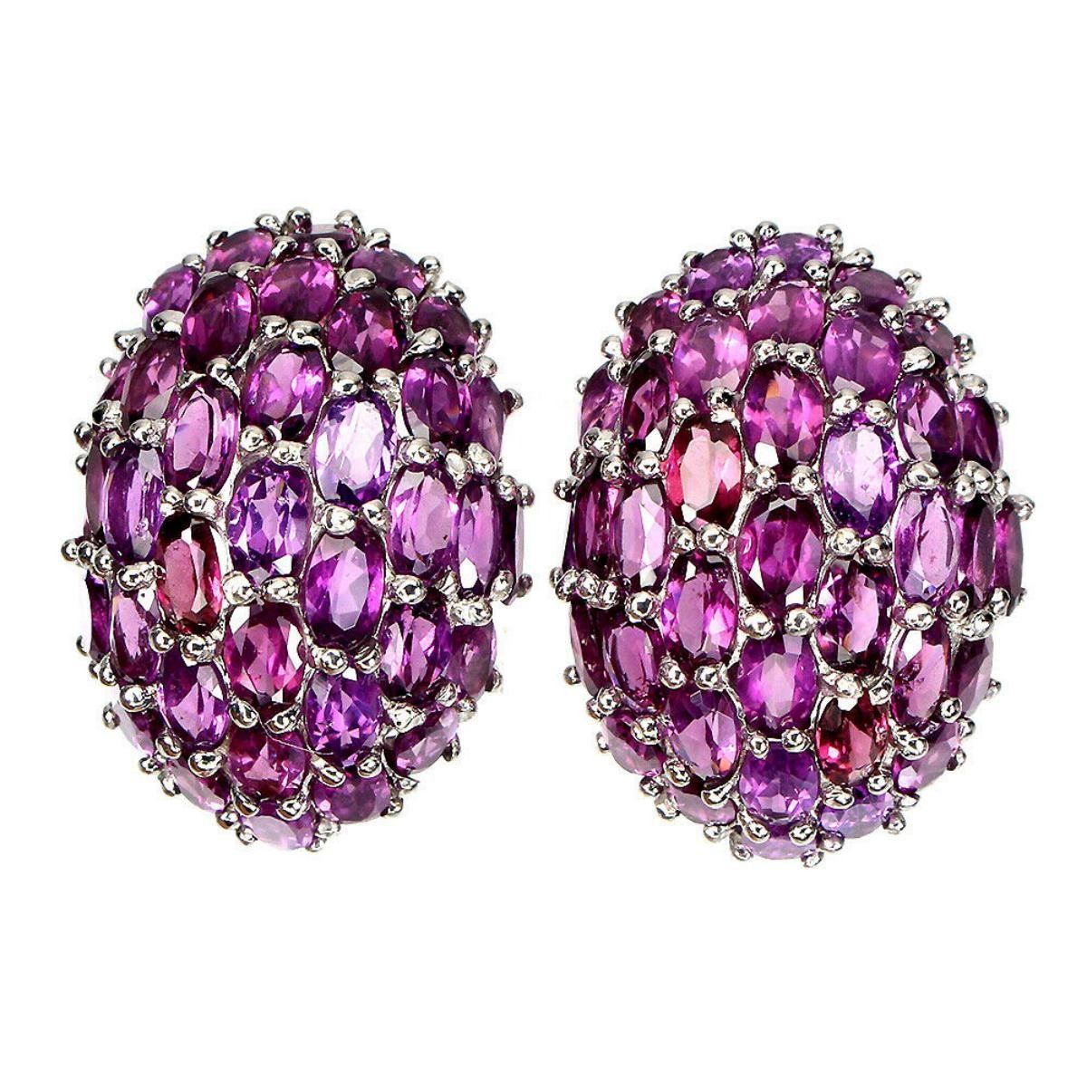 925 STERLING SILVER;PLATE-14K WHITE GOLD;MAIN STONE-RHODOLITE GARNET;TOTAL WEIGHT-12.07 GRAM (TOTAL WEIGHT OF SILVER + STONE)DIMENSION-* STONE 5.0 X 3.0 MM. * FACE EARRINGS 26.0 X 19.0 MM.;MAIN STONE SHAPE-OVAL CUT;MAIN STONE COLOR-TOP RICH PINK RASPBERRY;CLARITY/GRADE-IF TO VVS;TREATMENT-UNHEATED;ORIGIN-AFRICA;HARDNESS-7.0 - 7.5;