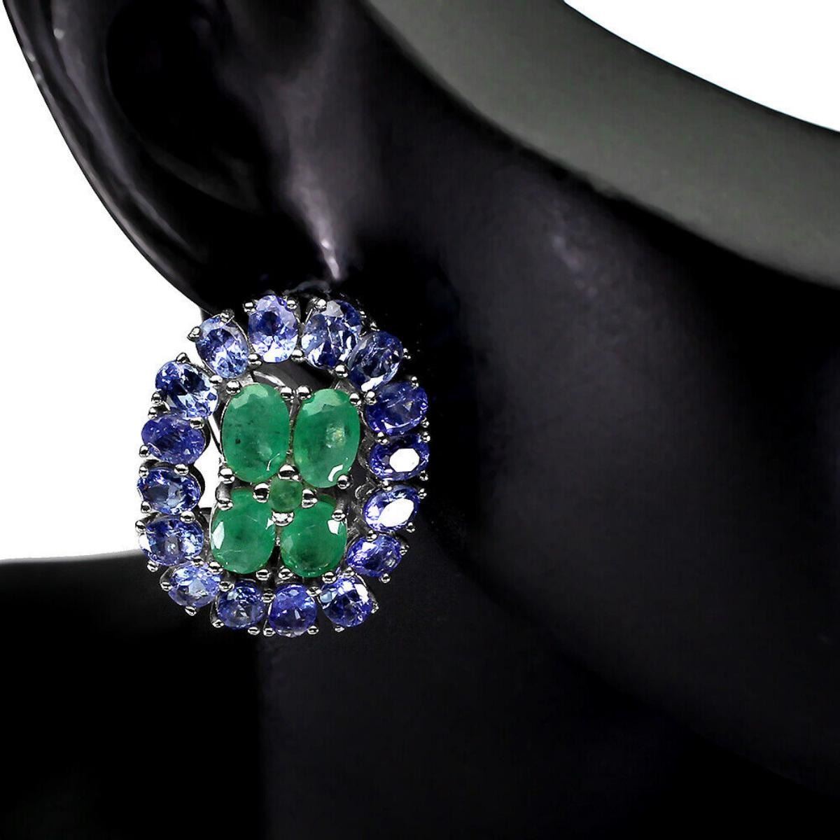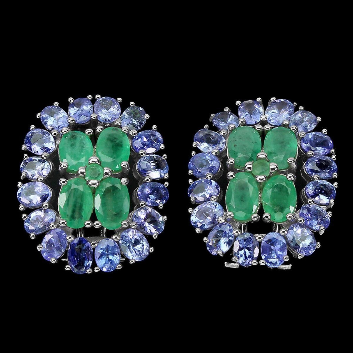 925 STERLING SILVER;PLATE-14K WHITE GOLD;MAIN STONE-EMERALD;OTHER GEMS-TANZANITE;TOTAL WEIGHT-8.5 GRAM (TOTAL WEIGHT OF SILVER + STONE)DIMENSION-* STONE 2.0 TO 6.0 X 4.0 MM.;* FACE EARRINGS- 23.0 X 18.0 MM.;MAIN STONE SHAPE-OVAL CUT;MAIN STONE COLOR- GREEN;TREATMENT-UNHEATED;ORIGIN-BRAZIL;HARDNESS-7.5 - 8.0;