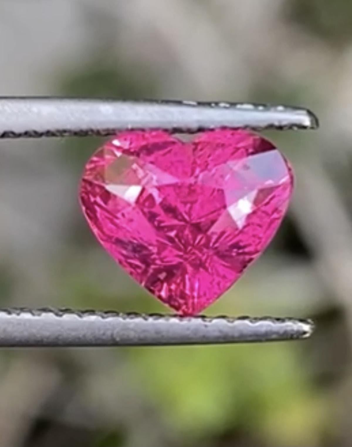 Natural Untreated Vivid Pink Mahenge Spinel.....weight 2.08 Cts; Heart shape; size 8.15 x 7.18 x 6.13 MM; completely untreated ....top vivid color ....VS clarity(eye clean).....Origin - Mahenge Region of Tanzania; Certified