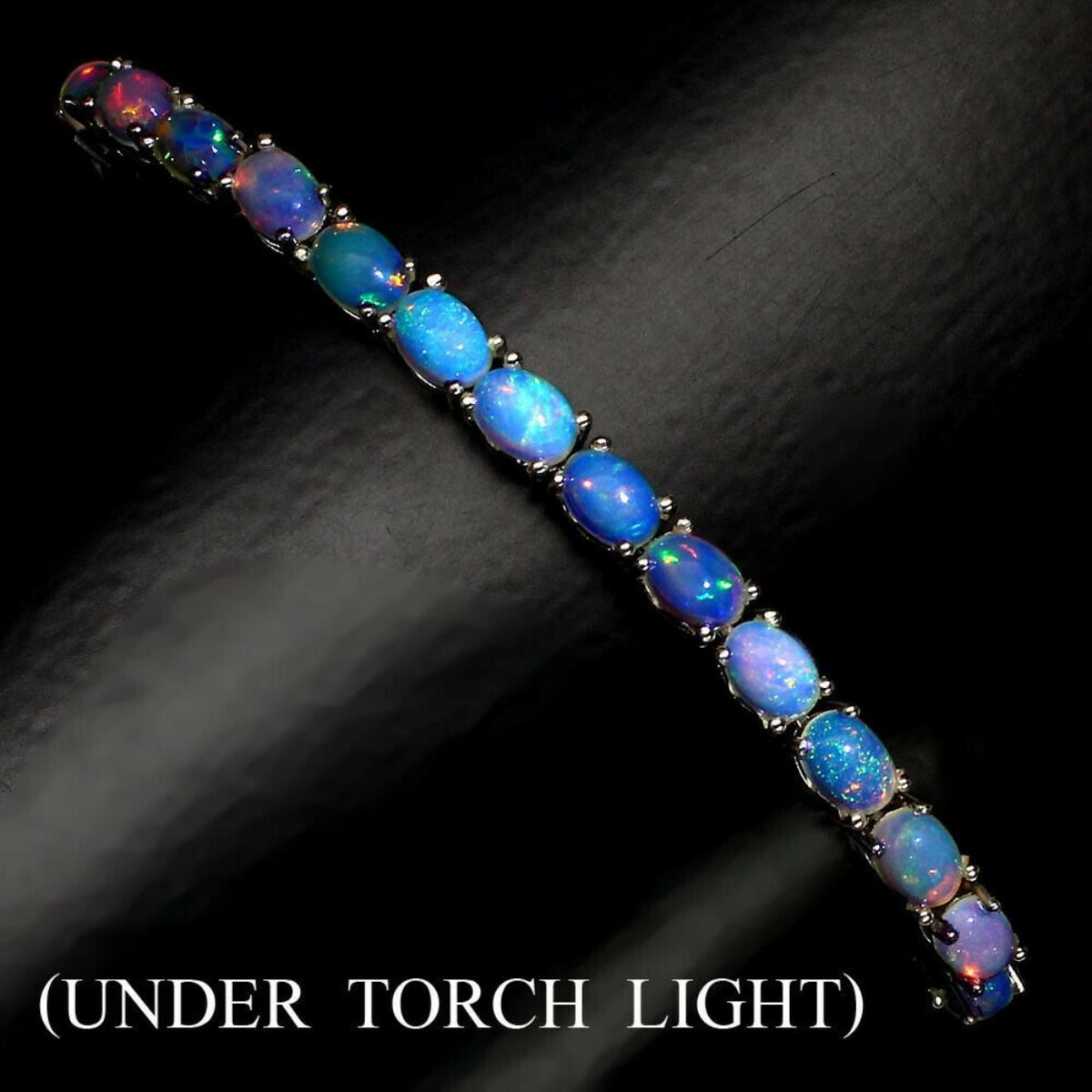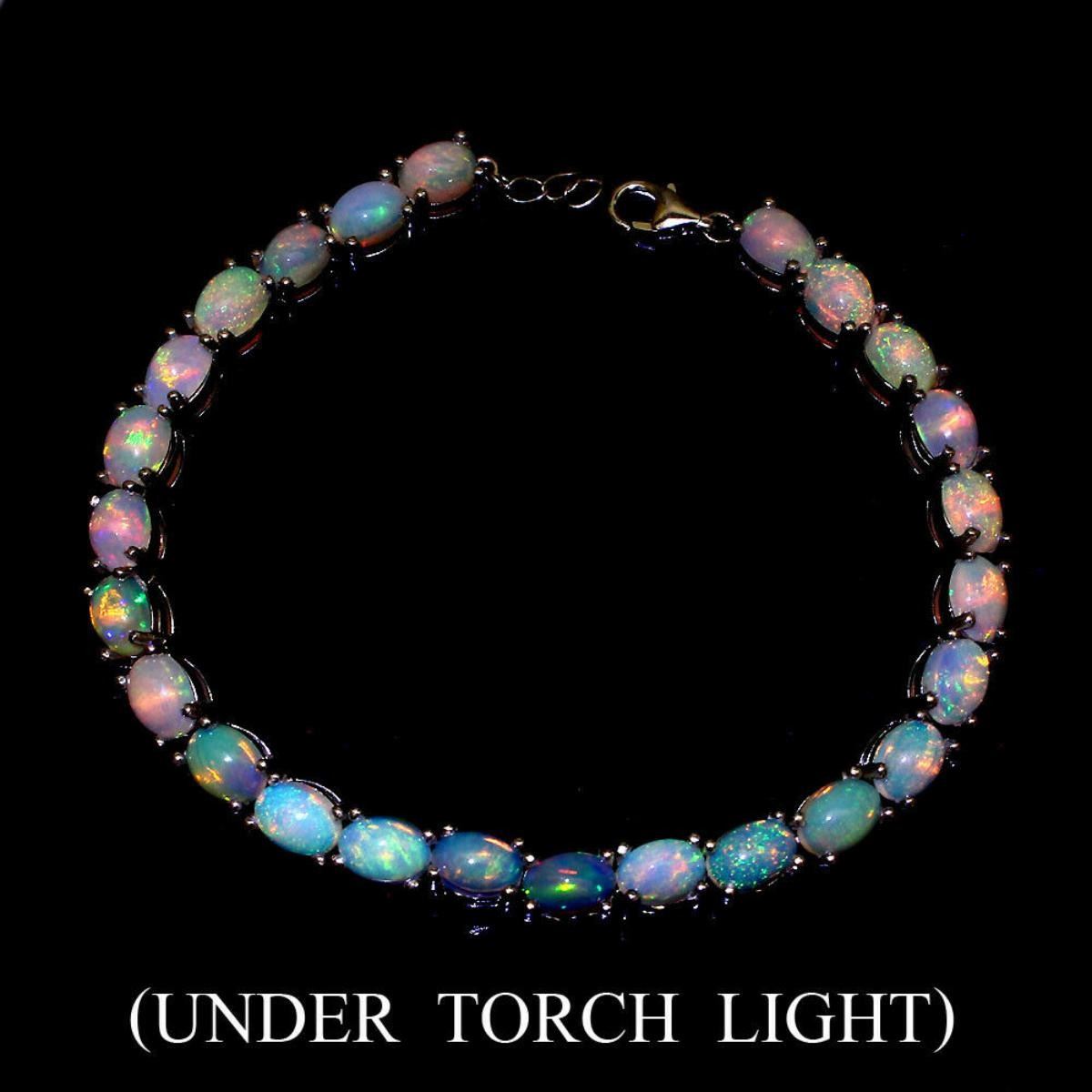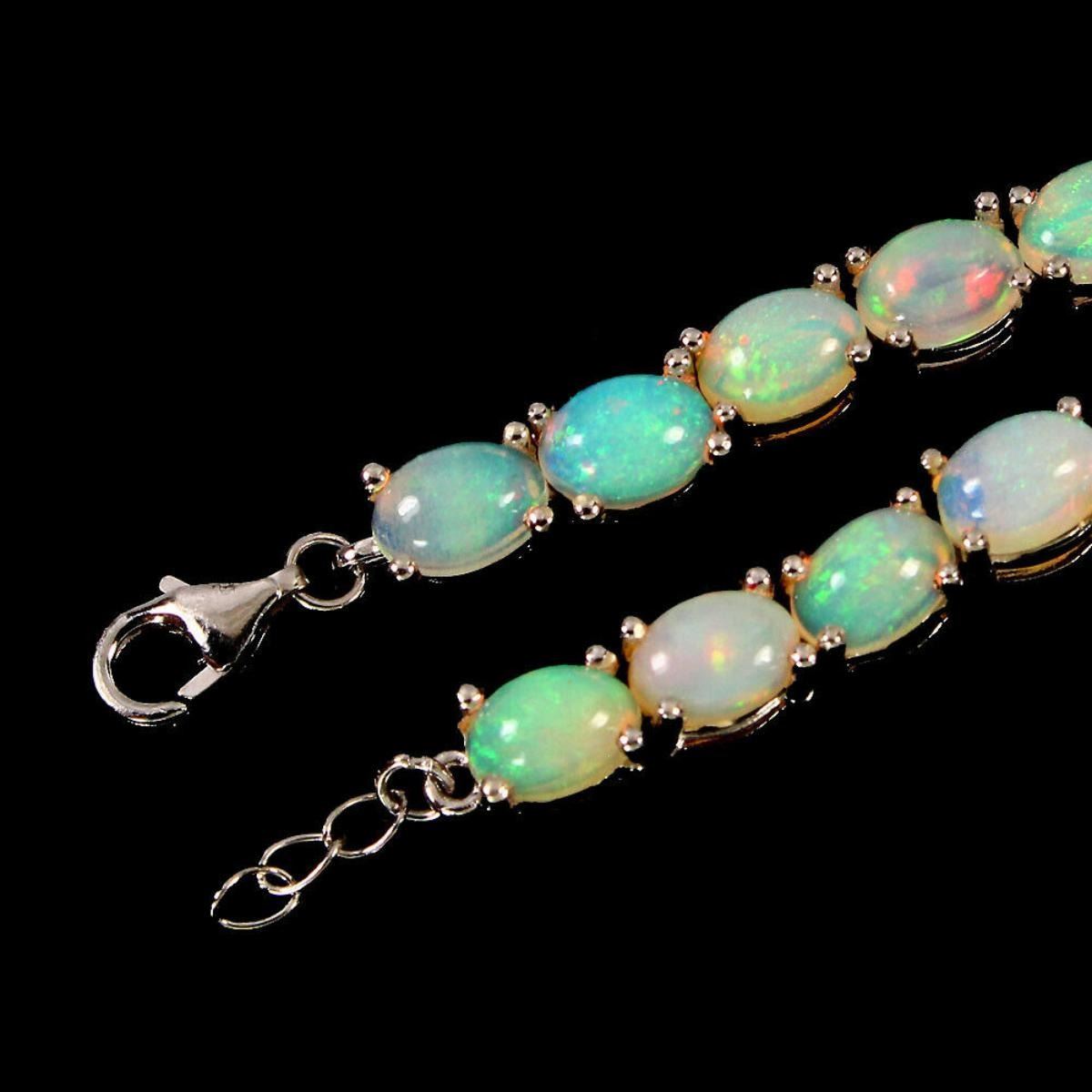 925 STERLING SILVER;PLATE-14K WHITE GOLD;LENGTH (INCHES)8;MAIN STONE-FIRE OPAL;TOTAL WEIGHT-74.54 CT (TOTAL WEIGHT OF SILVER + STONE)DIMENSION* STONE 7.0 X 5.0 MM. * FACE BRACELET 180.0 X 5.0 MM.;MAIN STONE SHAPE-OVAL CABOCHON;MAIN STONE COLOR-white RAINBOW ;LUSTER-AMAZING;TREATMENT-UNHEATED;ORIGIN-ETHIOPIA;HARDNESS-5.5 - 6.5;