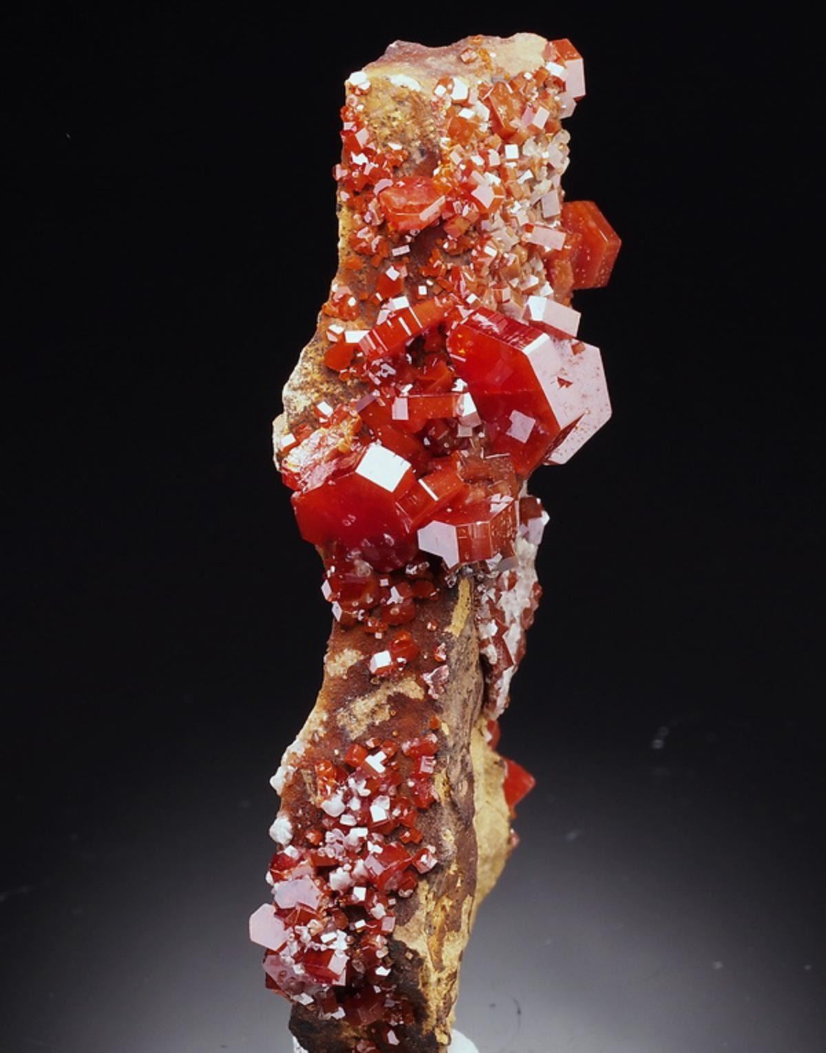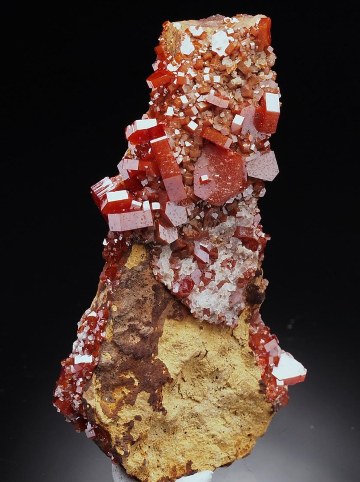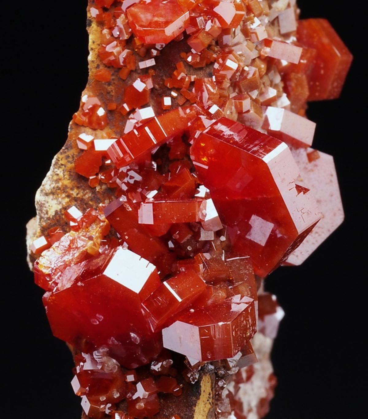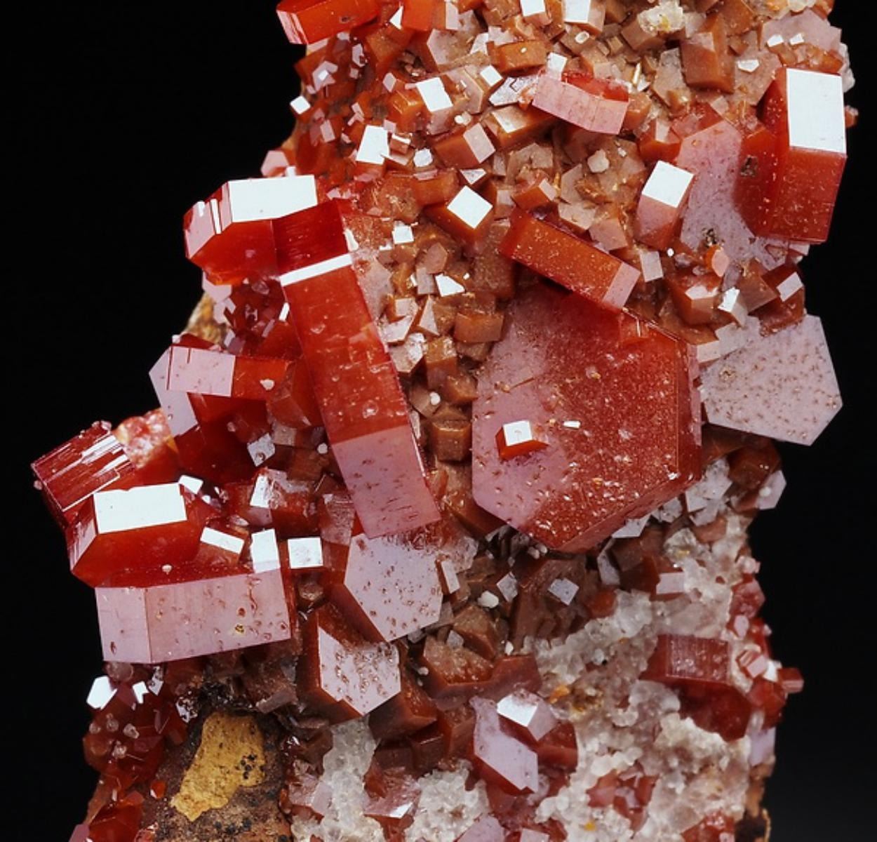 VANADINITECoud'a workings, Mibladen, Midelt, Mid Atlas Mts., MoroccoExtremely lustrous and well formed crystals of vanadinite on matrix.Aesthetic specimen !!!____________________size: 7 x 4 x 2.2 cmweight: 45 g