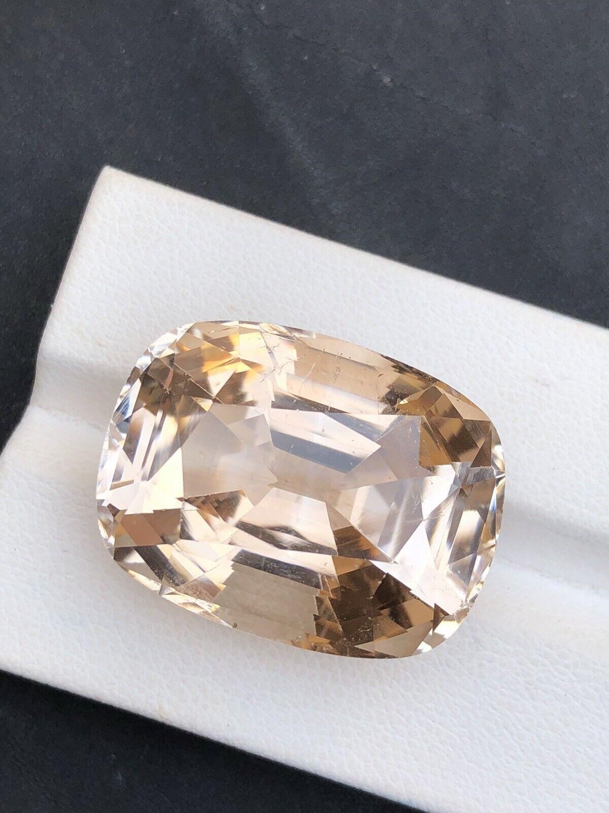 Natural Topaz SHAPE : Cushion Cut; SIZE ( L x W x D ) : 19.33 x 15.70 MM; QUANTITY : 1 piece COLOR : Very Light Champagne AAA Color CLARITY : Eye clean AAA Grade ORIGIN : Skurdu Mines; HARDNESS : 8 LUSTER : Excellent!!! TREATMENT : Heated