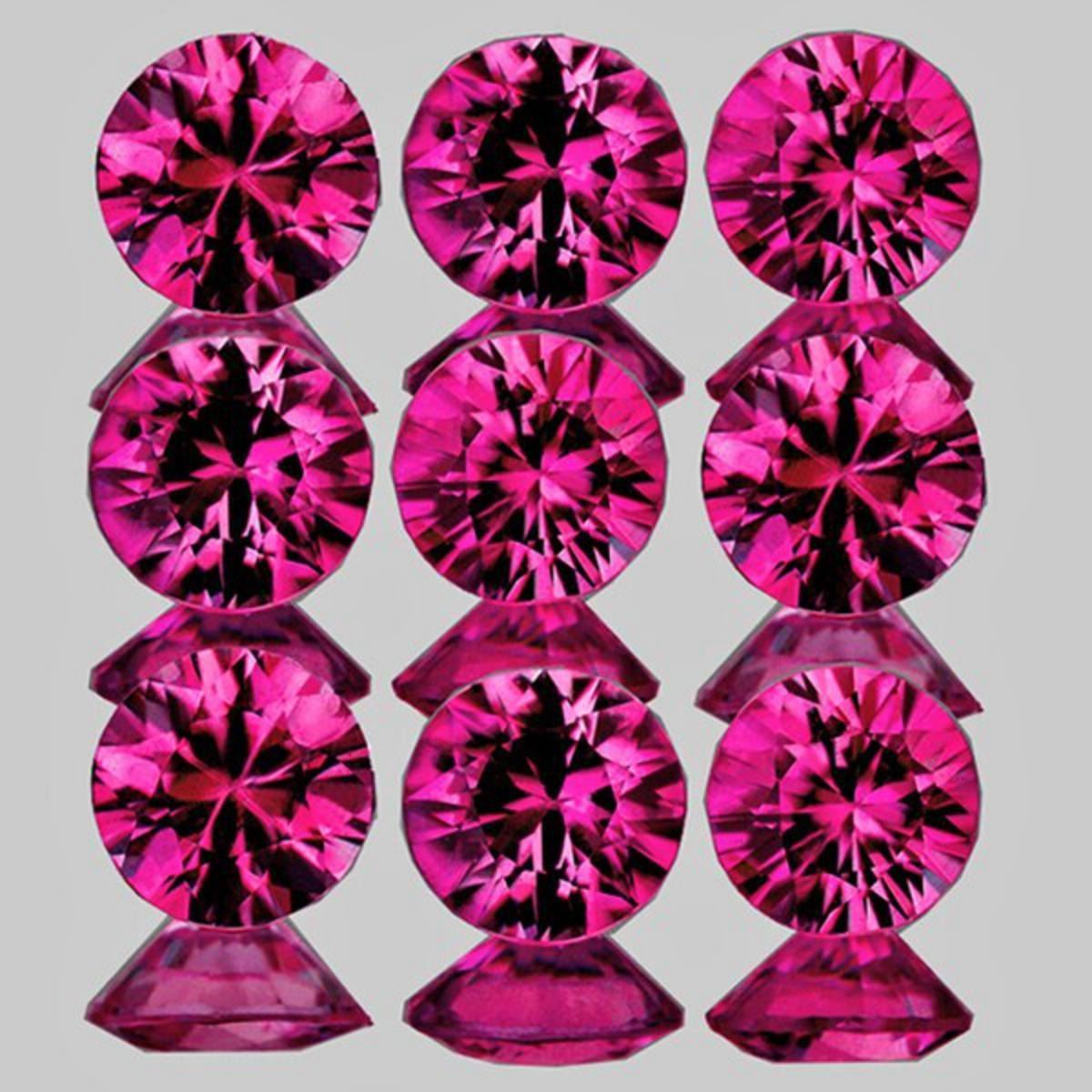 Natural Ruby (Earthly Mined)SIZE ( L x W x D ) : 2.70 mm;COLOR : Purplish Red AAA Color;SHAPE : Round Machine CutQUANTITY : 9 pieces;LUSTER : Extreme Brilliancy;CLARITY : Flawless-VVS;HARDNESS : 9ORIGIN : Mozambique; TREATMENT :Unheated/Untreated 100% Natural