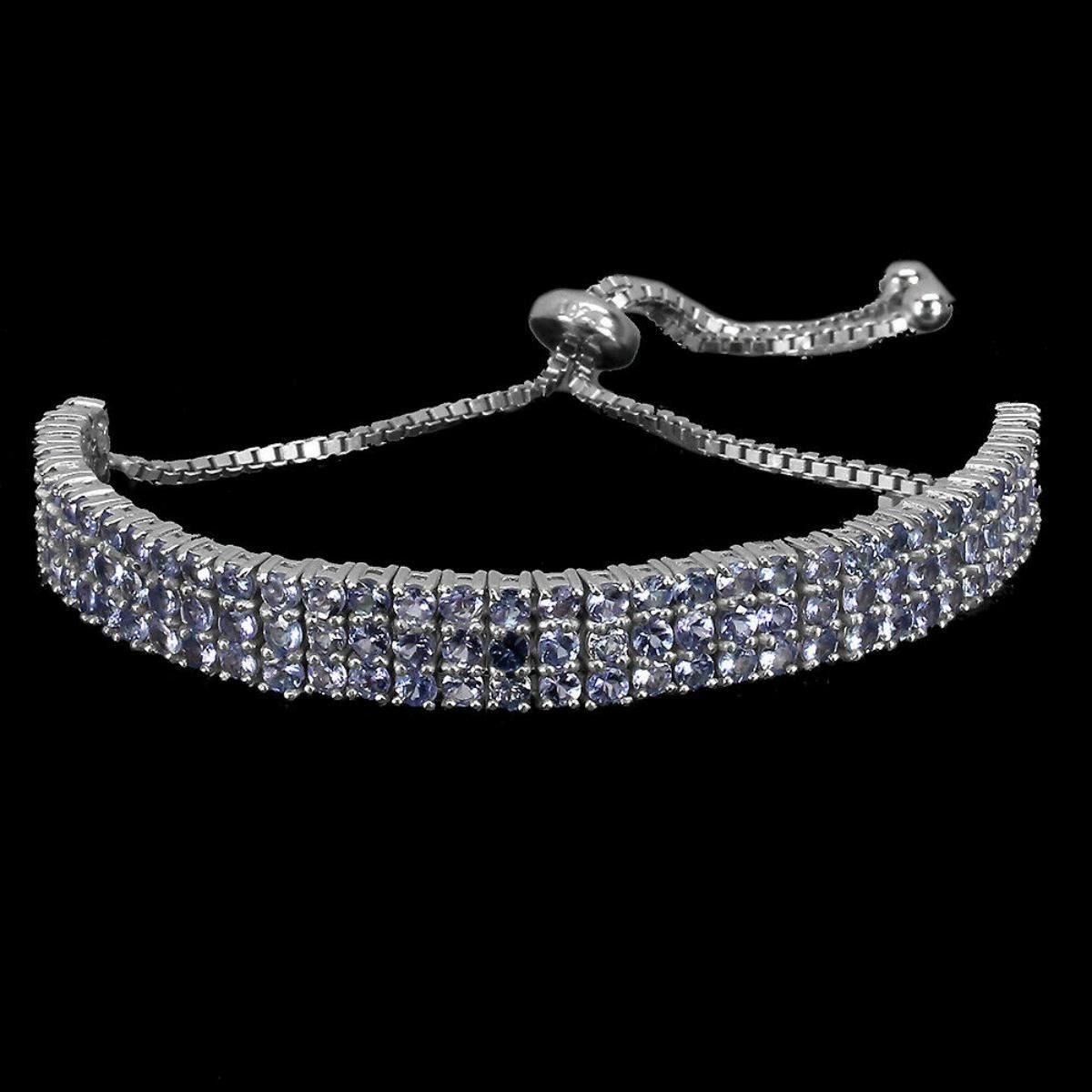 925 STERLING SILVER;PLATE-14K WHITE GOLD;LENGTH- (INCHES)9;MAIN STONE-TANZANITE;TOTAL WEIGHT-15.92 GRAM (TOTAL WEIGHT OF SILVER + STONE)DIMENSION-* STONE 2.5 MM. * TOTAL LENGTH 9.0 INCHES. * FACE BRACELET- 95.0 X 9.0 MM.;MAIN STONE SHAPE-ROUND CUT;MAIN STONE COLOR-TOP NICE BLUE VIOLET;CLARITY/GRADE-IF TO VVS;LUSTER-GORGEOUS;TREATMENT-UNHEATED;