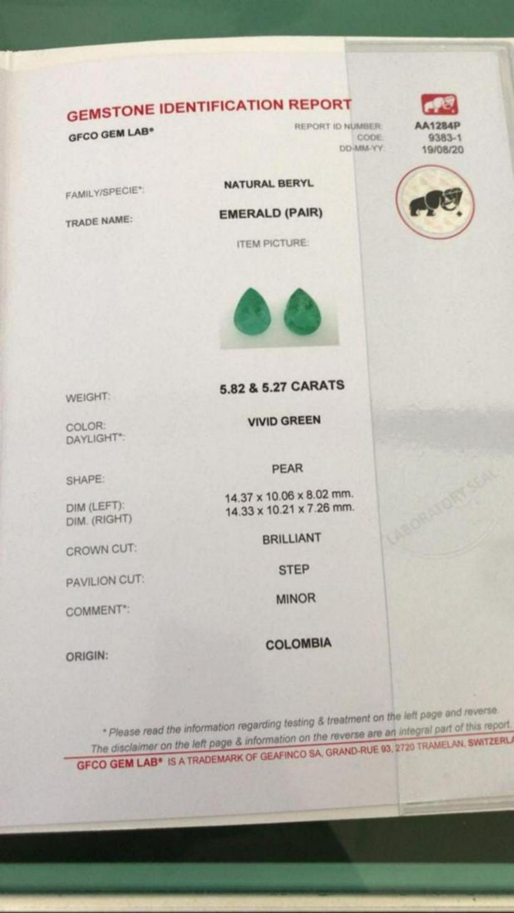 Natural Vivid Green Colombian Emerald Pair 11.09 Ct .....weight 5.82 & 5.27 Carats ; MM size - 14.37 x 10.06 x 8.02 MM & 14.33 x 10.21 x 7.26 MM; Pear Shape...Origin- Colombia