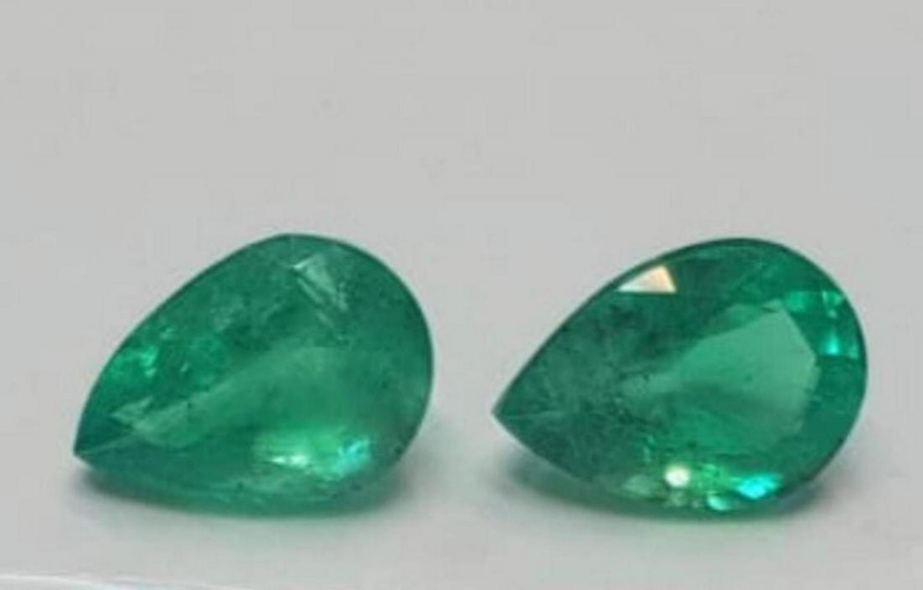 Natural Vivid Green Colombian Emerald Pair 11.09 Ct .....weight 5.82 & 5.27 Carats ; MM size - 14.37 x 10.06 x 8.02 MM & 14.33 x 10.21 x 7.26 MM; Pear Shape...Origin- Colombia