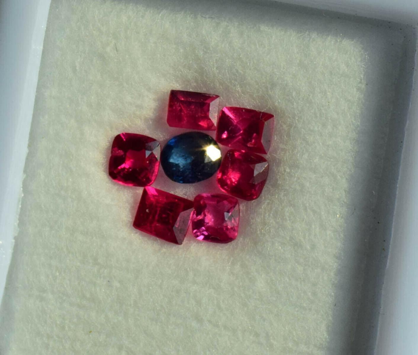 Spinel Type : 100% Genuine Natural Stone Unheated Untreated;Weight - Lot of 6 Vivid Red Jedi Spinel and 1 Blue Sappire Total 1.11cts;Origin : Berma / Myanmar;Treatment : none;