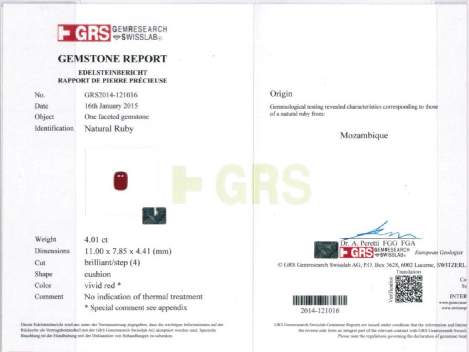 Natural Vivid Red Untreated Ruby - .....Totally eye clean......Size : 11.00 x 7.85 x 4.41 MM ; Origin - Mozambique; GRS Certified as Untreated and Vivid Red/Pigeon Blood Red