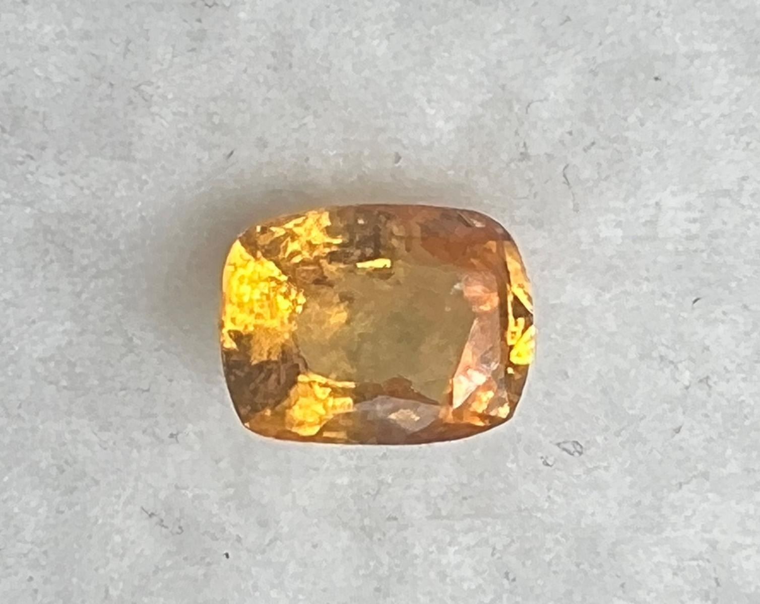 Natural Vivid Yellow Ceylon Sapphire; Weight- 2.170 Cts.; Size- 8.34x6.48 MM; Shape- Cushion; Color - Vivid Yellow; Clarity - SI; Origin- Ceylon; Gently heated only....natural earth mined.