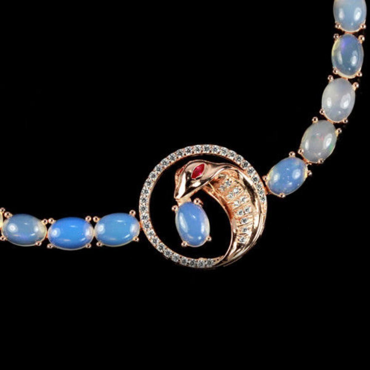 GENUINE RAINBOW OPAL RUBY & CZ 925 SILVER COBRA BRACELET 14K PINK GOLD COATING; LENGTH OF ITEM (Inch.)8.00 ;ITEM QUANTITY1STONE SHAPEOVAL CABOCHONSTONE DIMENSION6 X 4 MM.ITEM WEIGHT14.04 GRAMCOLORRAINBOWCLARITYTRANSLUCENTLUSTERALLURINGTREATMENTUNHEATEDORIGIN OF STONEAFRICAHARDNESS5.5 - 6.5WHITE CUBIC ZIRCONIA 1 MM.