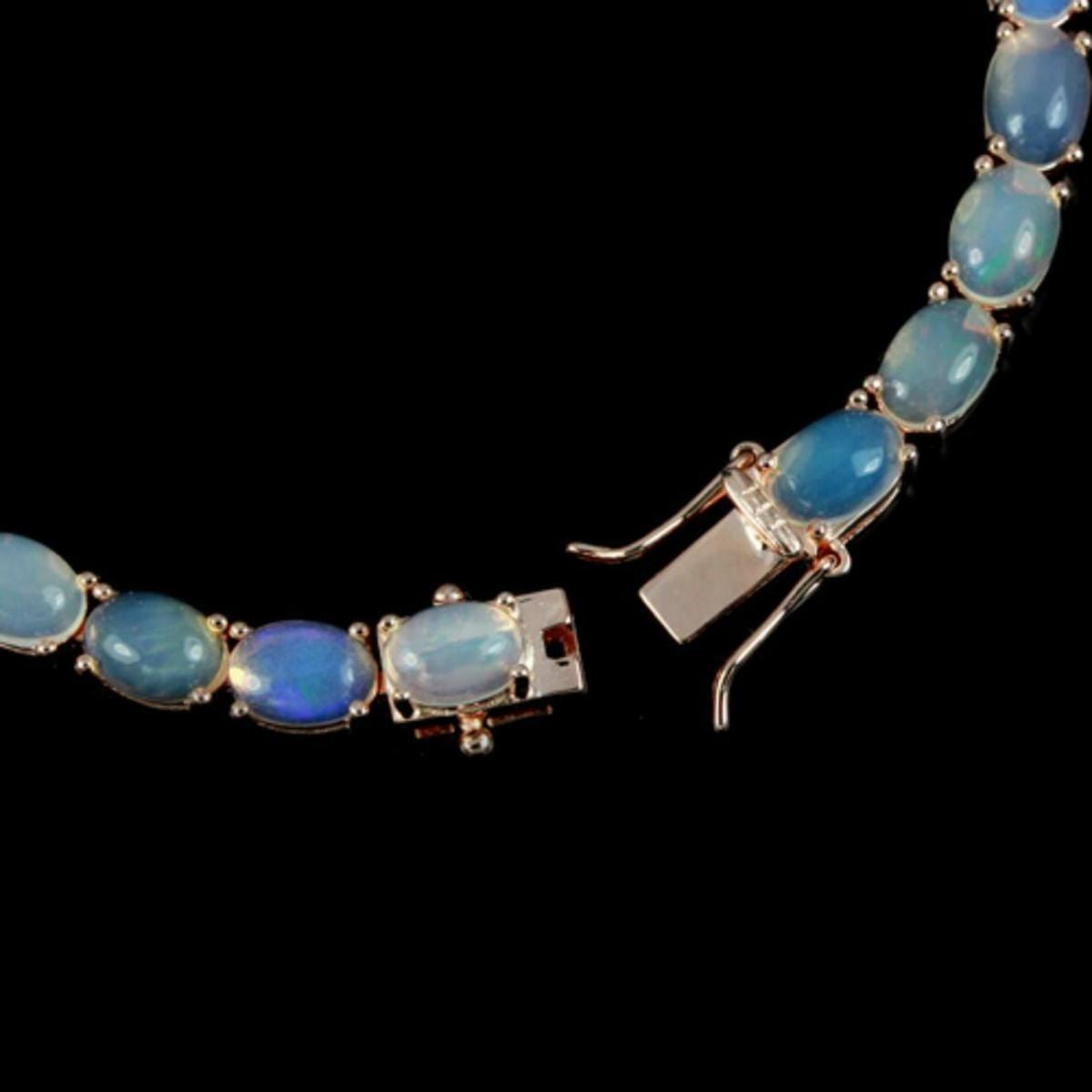 GENUINE RAINBOW OPAL RUBY & CZ 925 SILVER COBRA BRACELET 14K PINK GOLD COATING; LENGTH OF ITEM (Inch.)8.00 ;ITEM QUANTITY1STONE SHAPEOVAL CABOCHONSTONE DIMENSION6 X 4 MM.ITEM WEIGHT14.04 GRAMCOLORRAINBOWCLARITYTRANSLUCENTLUSTERALLURINGTREATMENTUNHEATEDORIGIN OF STONEAFRICAHARDNESS5.5 - 6.5WHITE CUBIC ZIRCONIA 1 MM.