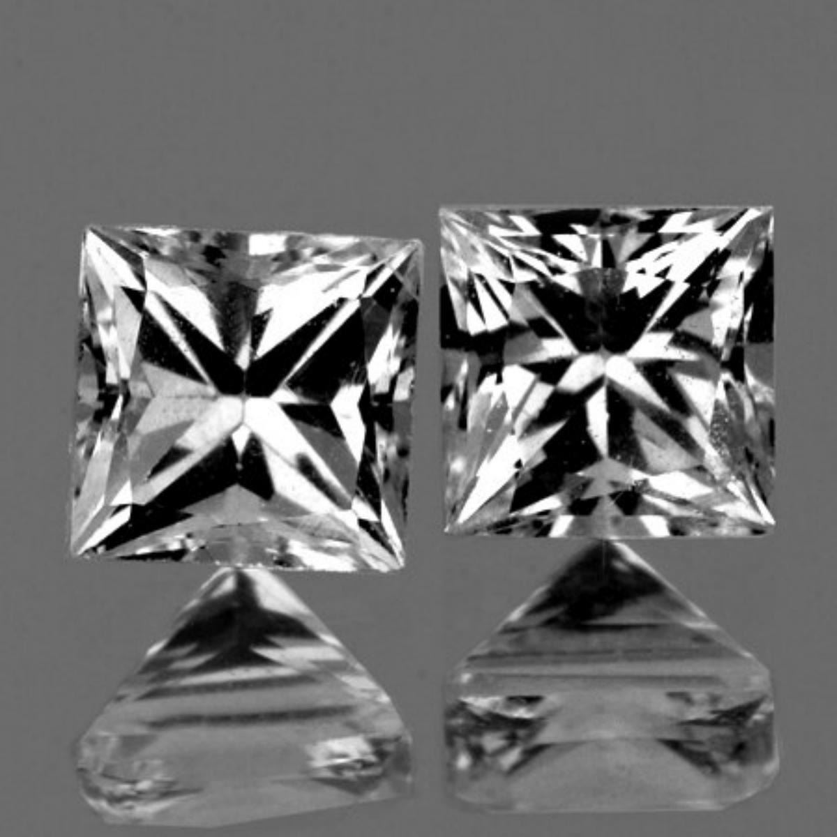 Natural White Sapphire; SHAPE : Square (Princess Cut) SIZE ( L x W x D ) : 3.00 mm QUANTITY : 2 pieces ( Perfectly Matched Pair) COLOR : White (Very Light Pink) CLARITY : Flawless-VVS1 AAA Grade; ORIGIN : Ceylon; HARDNESS : 9 LUSTER : Best AAA Fire!!! TREATMENT : UnHeated 100% Natural;