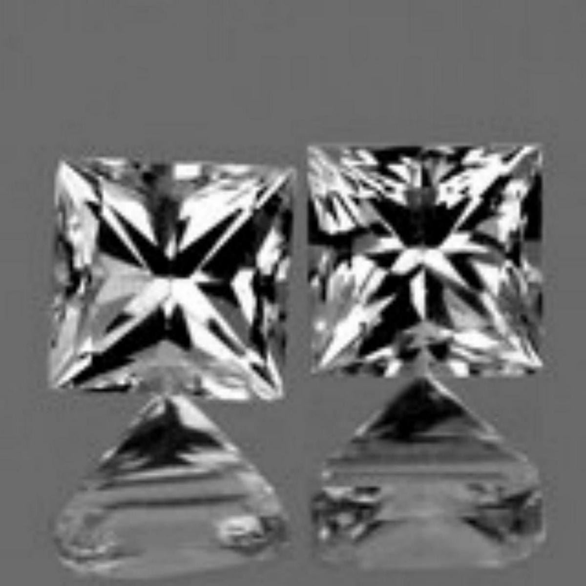 Natural White Sapphire Pair{Flawless-VVS1}....size 3.20 MM..princess cut....origin - Ceylon; Completely untreated