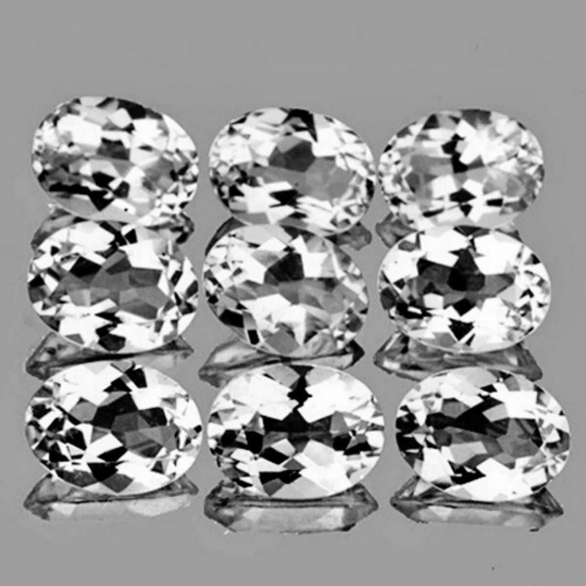 Natural White Topaz ;; SHAPE : Oval; SIZE ( L x W x D ) : 7.00 x 5.00 mm; QUANTITY : 9 pieces ( Perfectly Matched Set ) COLOR : White/Colorless; CLARITY : Flawless-VVS1 AAA Grade; ORIGIN : Brazil; HARDNESS : 8; LUSTER : Excellent!!! TREATMENT : Unheated Untreated 100% Natural;