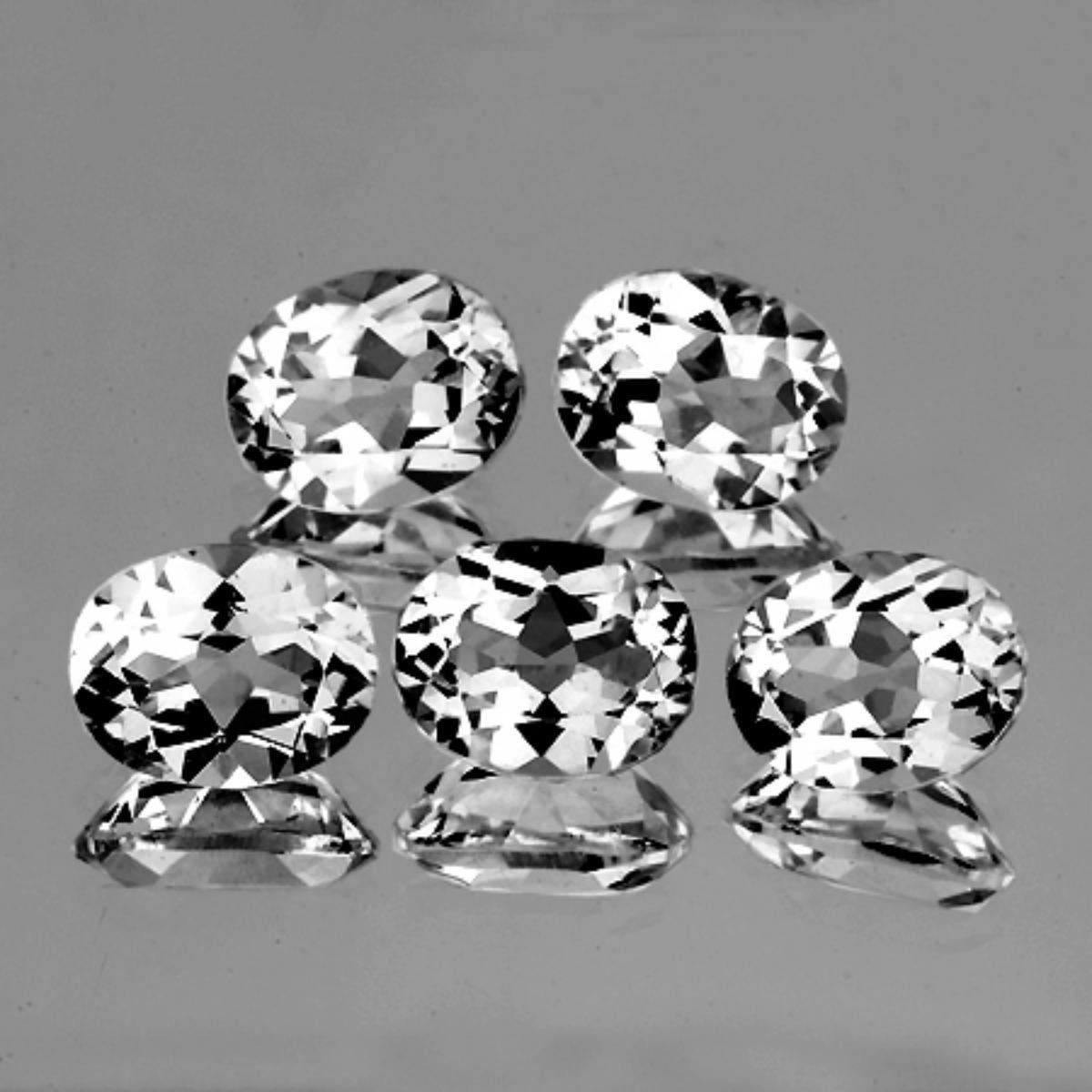 Natural White Topaz WEIGHT : 10.43 cts SHAPE : Oval; SIZE ( L x W x D ) : 9.00 x 7.00 mm; QUANTITY : 5 pieces ( Perfectly Matched Set ) COLOR : White; CLARITY : IF-VVS1; ORIGIN : Brazil HARDNESS : 8; LUSTER : Excellent!!! TREATMENT : Unheated;