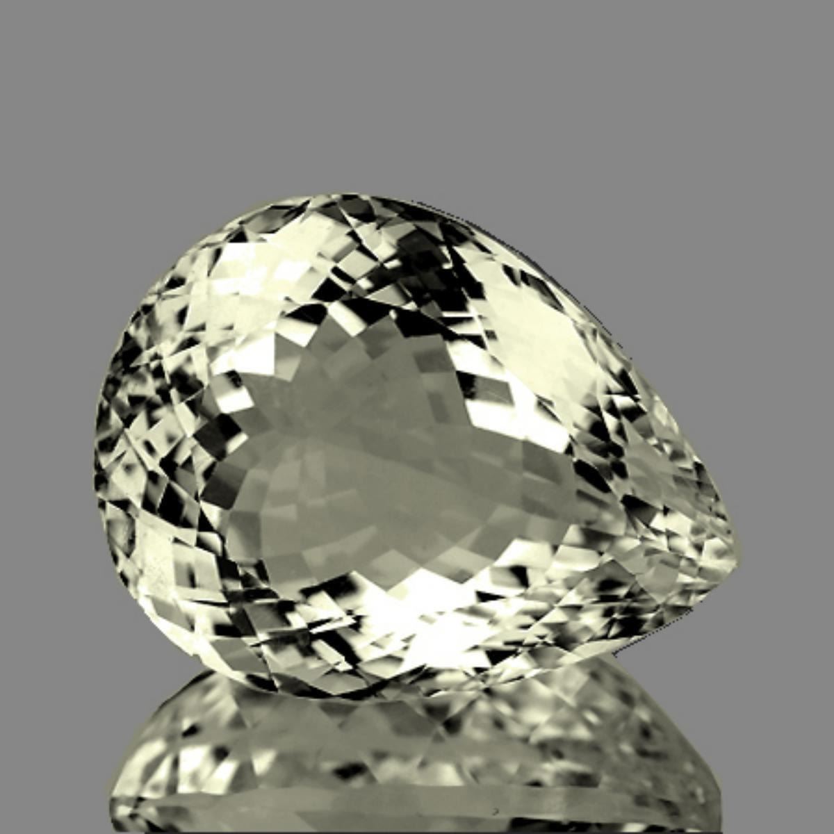 Natural Topaz WEIGHT : 104.74 cts; SHAPE : Pear; SIZE ( L x W x D ) : 31.00 x 24.50 x 17.07 mm; QUANTITY : 1 piece; COLOR : Very Light Yellow (Natural Color) CLARITY : Flawless-VVS1 AAA Grade; ORIGIN : Brazil; HARDNESS : 8; LUSTER : Excellent!!! TREATMENT : Unheated & Untreated 100% Natural;