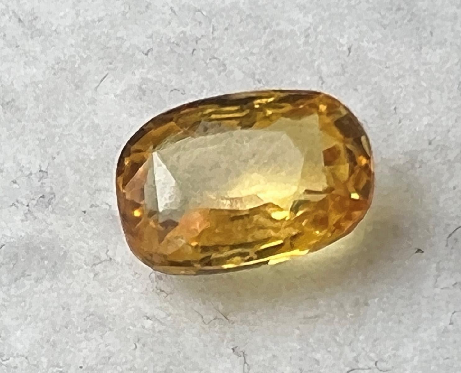 Natural Yellow Ceylon Sapphire; Weight-3.44 Cts; Size-9.87x6.92 MM; Shape- Cushion; Color- Yellow; Clarity - SI; Origin- Ceylon; Gently heated only....natural earth mined.
