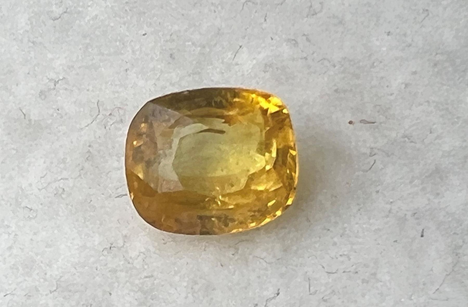 Natural Yellow Ceylon Sapphire; Weight-3.89 Cts; Size-9.44x7.92 MM; Shape- Cushion; Color - Yellow; Clarity - SI; Origin- Ceylon; Gently heated only....natural earth mined.