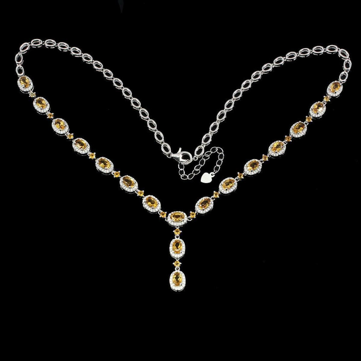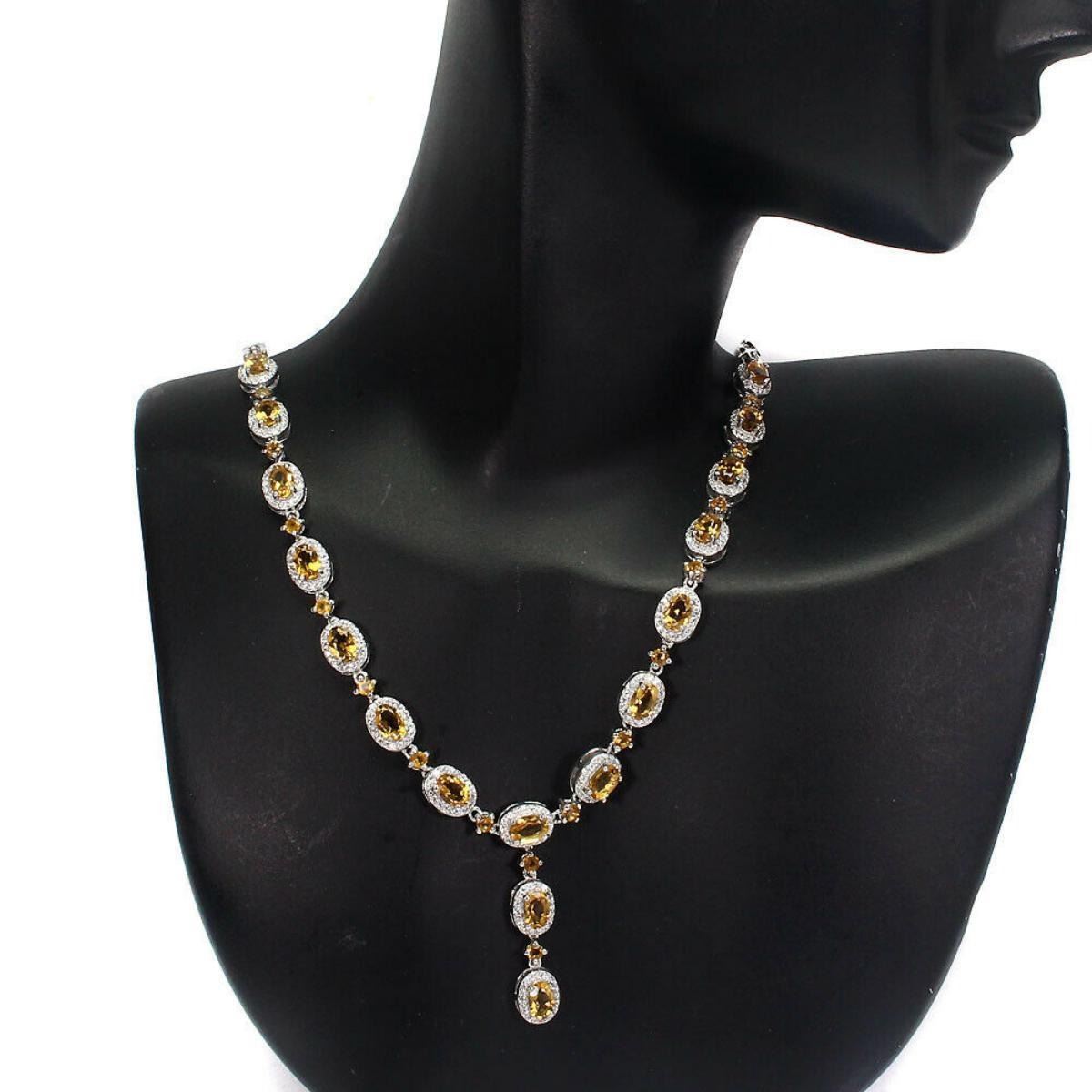 925 STERLING SILVER;PLATE.....14K WHITE GOLD;LENGTH (INCHES)19;MAIN STONE...CITRINE;OTHER GEMS....CUBIC ZIRCONIA;TOTAL WEIGHT...24.62 GRAM or 122.50 Carats (TOTAL WEIGHT OF SILVER + STONE)DIMENSION* STONE 2.5 TO 6.0 X 4.0 MM. * CZ 1.0 MM. * STONES PART LENGTH 220.0 X 35.0 MM.;MAIN STONE SHAPEOVAL CUT;MAIN STONE COLORTOP RICH YELLOW;CLARITY/GRADEIF TO VVS;LUSTERLUXURIOUS;TREATMENTUNHEATED;ORIGINBRAZIL;HARDNESS7;