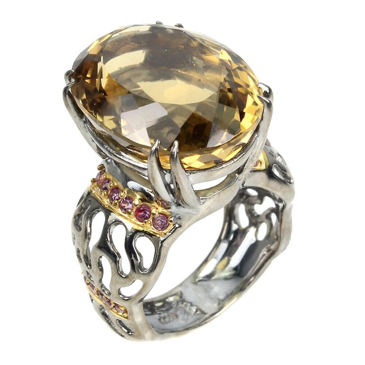 925 STERLING SILVER;PLATE-2-TONE BLACK RHODIUM & YELLOW 14K GOLD;RING SIZE/resizable-7;MAIN STONE-CITRINE;OTHER GEMS-RHODOLITE GARNET;TOTAL WEIGHT-11.78 GRAM (TOTAL WEIGHT OF SILVER + STONE)DIMENSION-* STONE 1.5 TO 20.0 X 15.0 MM.;* FACE RING- 20.0 X 15.0 MM.;MAIN STONE SHAPE-OVAL CUT;MAIN STONE COLOR- YELLOW;CLARITY/GRADE-IF;TREATMENT-UNHEATED;ORIGIN-BRAZIL;HARDNESS-7;