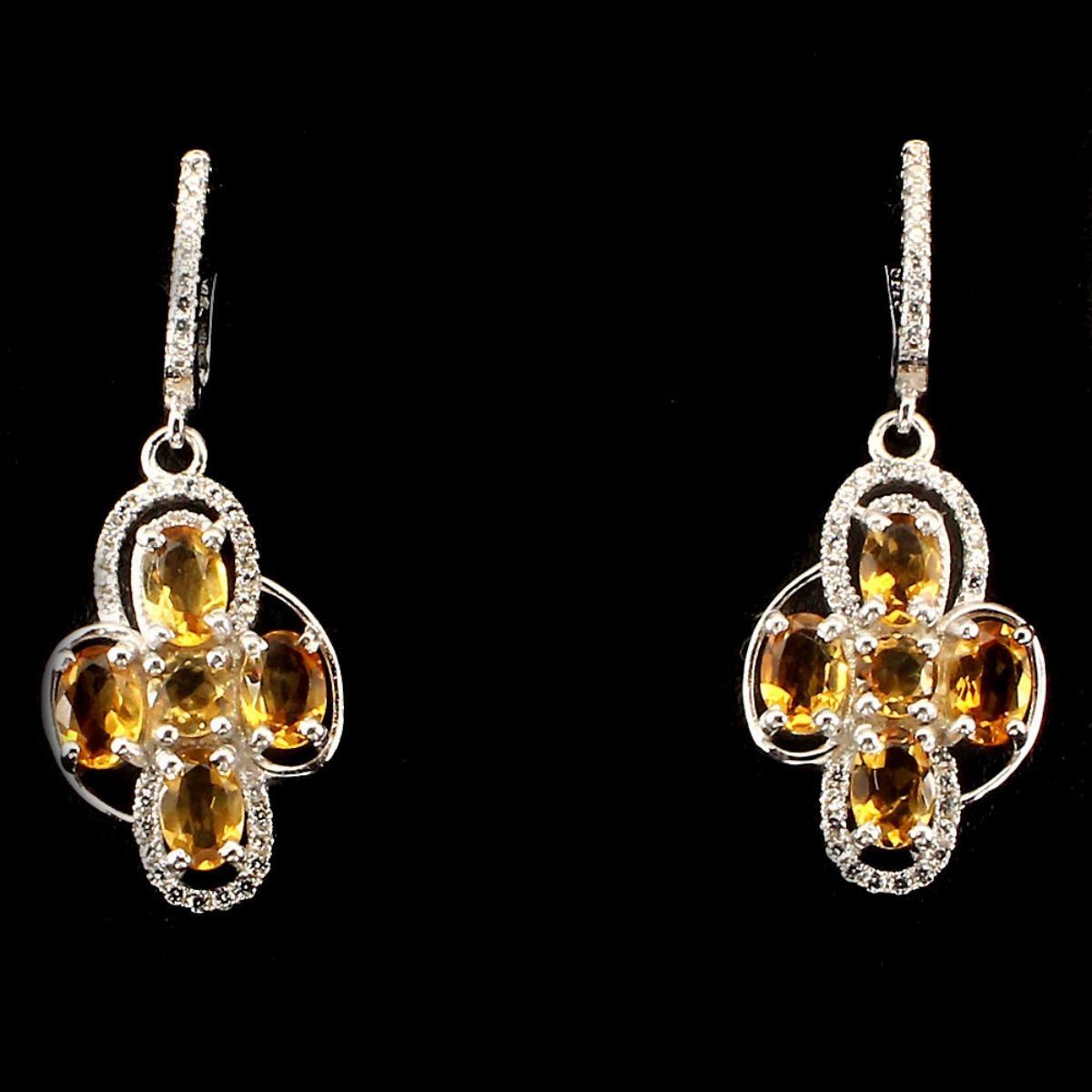 925 STERLING SILVER...PLATE-14K WHITE GOLD;MAIN STONE-CITRINE;OTHER GEMS-CUBIC ZIRCONIA;TOTAL WEIGHT-31.59 CT (TOTAL WEIGHT OF SILVER + STONE);DIMENSION* STONE 4.0 TO 6.0 X 4.0 MM. * CZ 1.0 MM. * FACE EARRINGS 48.0 X 15.0 MM.;MAIN STONE SHAPE-OVAL CUT;MAIN STONE COLOR-TOP RICH YELLOW;CLARITY/GRADE-IF TO VVS;LUSTER;TREATMENT-UNHEATED;ORIGIN-BRAZIL;HARDNESS-7.0;