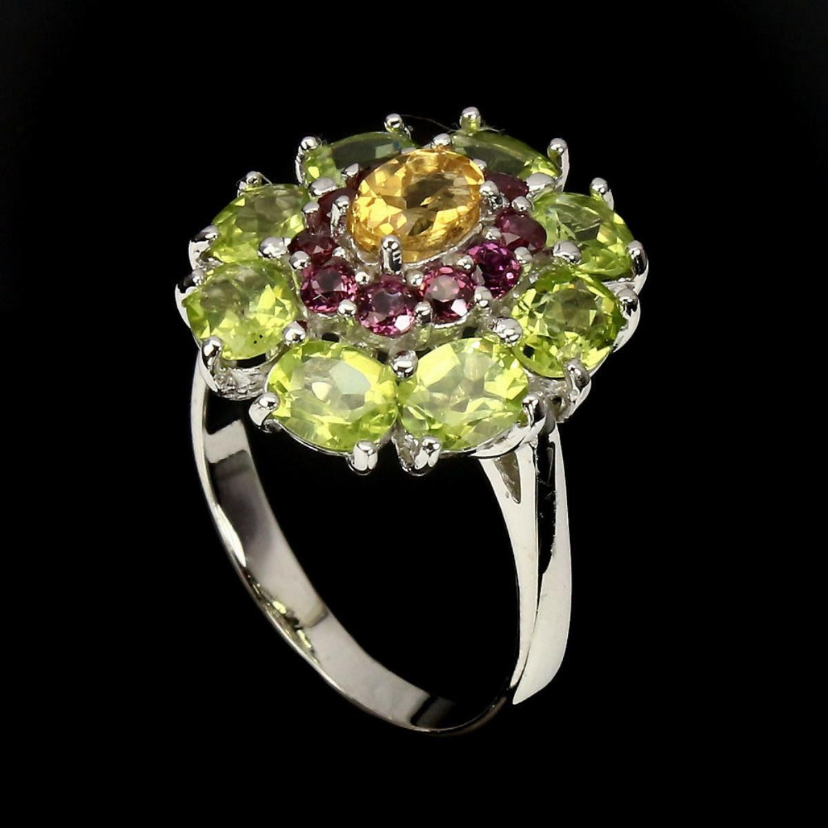 925 STERLING SILVER;PLATE14K WHITE GOLD;RING SIZE7.5(RESIZEABLE)MAIN STONECITRINEOTHER GEMSPERIDOT,RHODOLITE GARNETTOTAL WEIGHT23.65 CT (TOTAL WEIGHT OF SILVER + STONE)DIMENSION* STONE 2.5 TO 6.0 X 4.0 MM. * RING SIZE 7.5 * FACE RING 19.0 X 17.0 MM.MAIN STONE SHAPEOVAL CUTMAIN STONE COLORTOP RICH YELLOWCLARITY/GRADEIF TO VVSLUSTERDELUXETREATMENTUNHEATEDORIGINBRAZILHARDNESS7.0