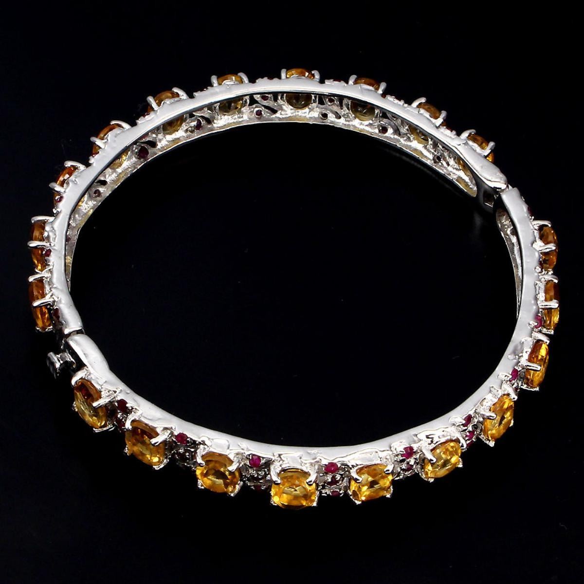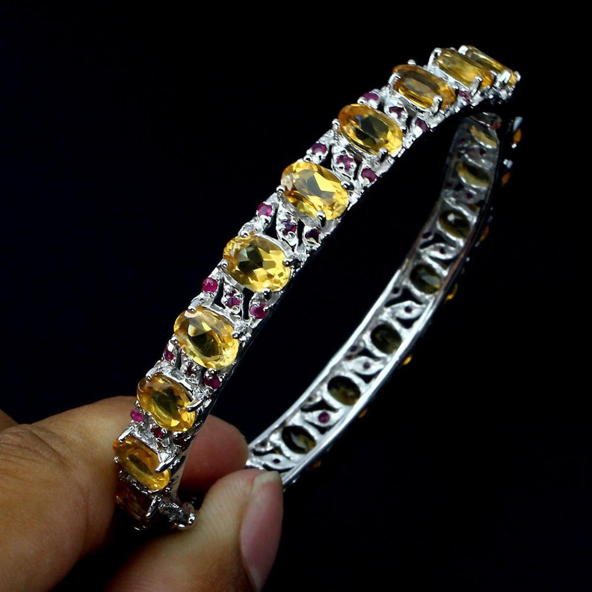 925 STERLING SILVER..........PLATE-14K WHITE GOLD;LENGTH (INCHES).......2.3 Inch;MAIN STONE-CITRINE;OTHER GEMS-RUBY;TOTAL WEIGHT-98.59 CT (TOTAL WEIGHT OF SILVER + STONE)DIMENSION* STONE 1.0 TO 7.0 X 5.0 MM. * DIAMETER 2.3 X 2.2 ;INCHES. * FACE BANGLE 126.0 X 7.0 MM.;MAIN STONE SHAPE-OVAL CUT;MAIN STONE COLOR-TOP RICH YELLOW;CLARITY/GRADE-IF TO VVS;TREATMENT-UNHEATED;ORIGIN-BRAZIL;HARDNESS7