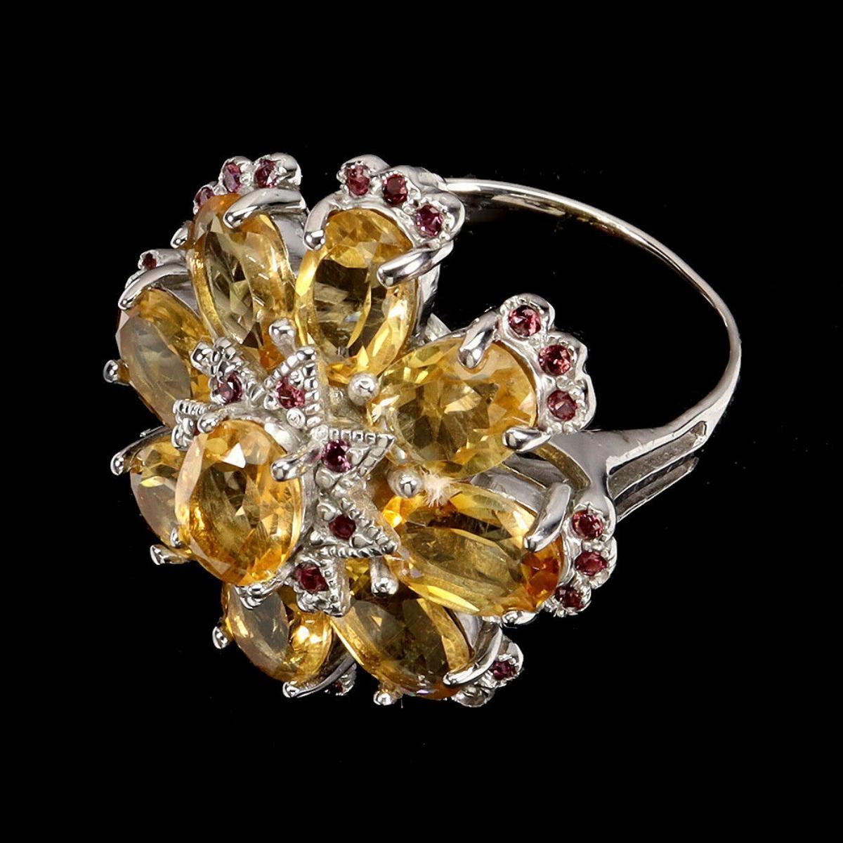 925 STERLING SILVER;PLATE-14K WHITE GOLD;RING SIZE/resizable-9.5;MAIN STONE-CITRINE;OTHER GEMS-RHODOLITE GARNET;TOTAL WEIGHT-11.39 GRAM (TOTAL WEIGHT OF SILVER + STONE)DIMENSION-* STONE 1.0 TO 8.0 X 6.0 MM.;* RING SIZE- 9.5;* FACE RING -28.0 X 27.0 MM.;MAIN STONE SHAPE-OVAL CUT;MAIN STONE COLOR-TOP RICH YELLOW;CLARITY/GRADE-IF;TREATMENT-UNHEATED;ORIGIN-BRAZIL;HARDNESS-7;
