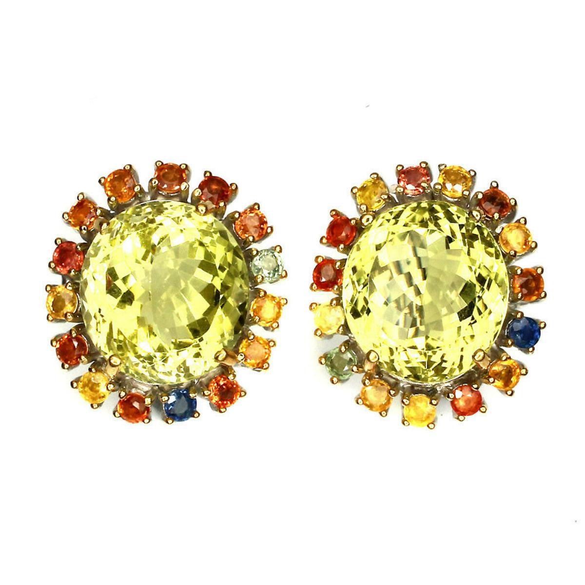 925 STERLING SILVER;PLATE2-TONE WHITE & YELLOW 14K GOLD;MAIN STONELEMON QUARTZ;OTHER GEMSSAPPHIRE;TOTAL WEIGHT115.89 CT (TOTAL WEIGHT OF SILVER + STONE)DIMENSION* STONE 3.0 TO 17.0 X 12.0 MM. * FACE EARRINGS 15.0 X 12.0 MM.MAIN STONE SHAPEOVAL CUTMAIN STONE COLORTOP LEMON YELLOWCLARITY/GRADEIFLUSTERPRECIOUSTREATMENTUNHEATEDORIGINBRAZILHARDNESS7.0 - 9.0