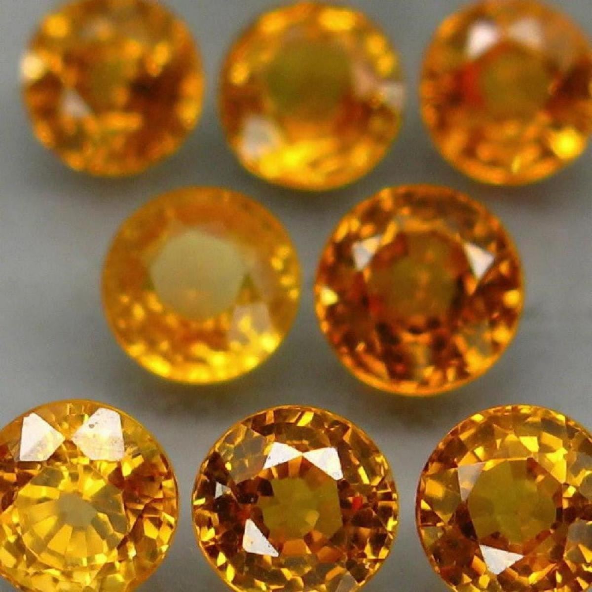 Natural Sapphire ( Heated) ; SHAPE Round; WEIGHT 4.66 Ct.; SIZE 4.5 X to X 5 mm; QUANTITY 8 Pieces;COLOR -Gold Yellow; CLARITY - VS & SI; ORIGIN - Africa;TREATMENT - Heated; HARDNESS9
