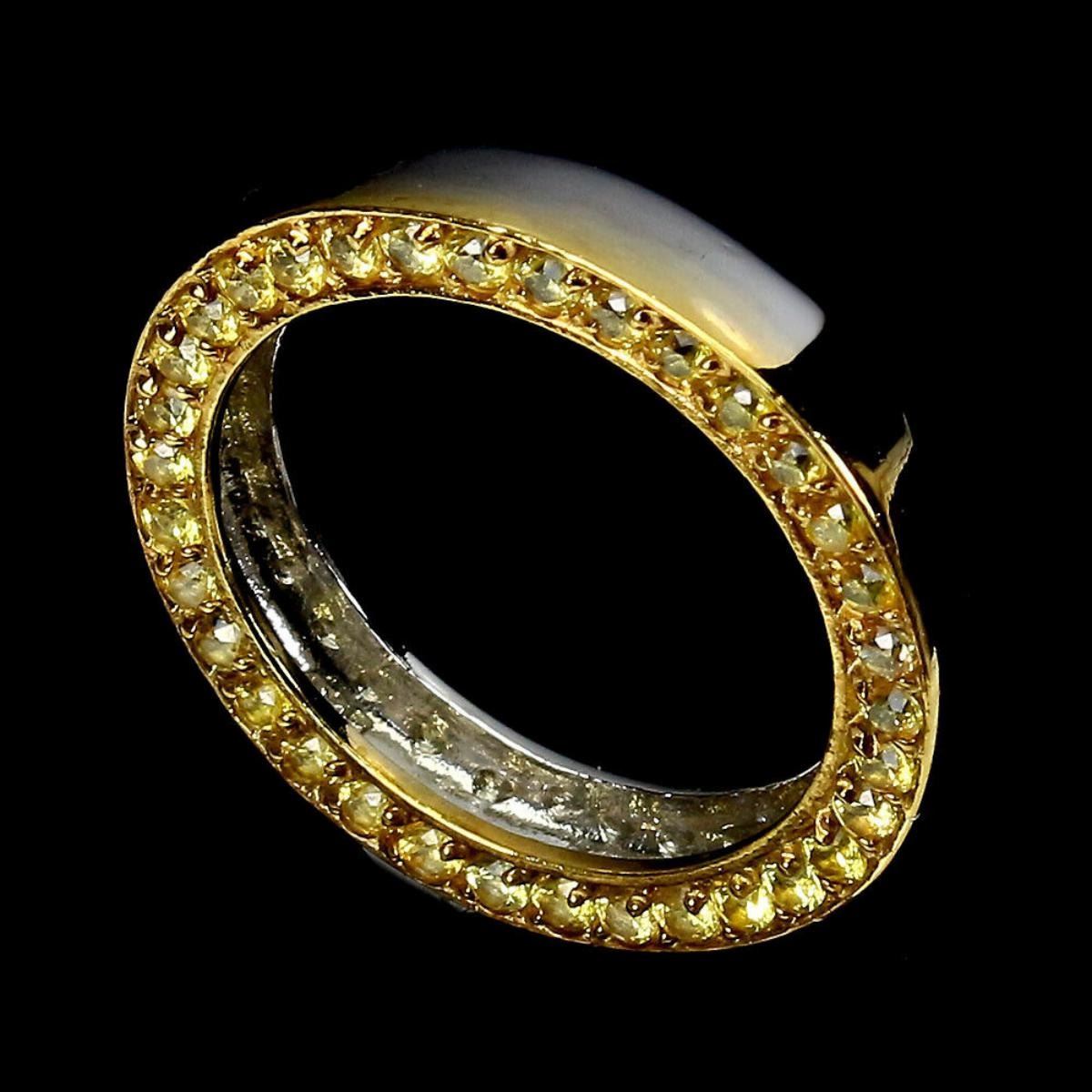 925 STERLING SILVER;PLATE-2-TONE WHITE & YELLOW 14K GOLD;RING SIZE-7;MAIN STONE-SAPPHIRE;TOTAL WEIGHT-3.66 GRAM (TOTAL WEIGHT OF SILVER + STONE);DIMENSION-* STONE 1.5 MM.* RING SIZE 7.0* FACE RING 22.0 X 4.0 MM.;MAIN STONE SHAPE-ROUND; MAIN STONE COLOR-YELLOW;CLARITY/GRADE-IF TO VVS;TREATMENT-HEATED;ORIGIN-SONGEA - AFRICA;HARDNESS-9;