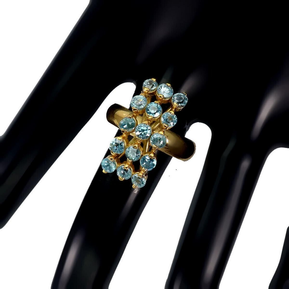 925 STERLING SILVER;PLATE-14K YELLOW GOLD;RING SIZE-10(RESIZABLE);MAIN STONE-BLUE ZIRCON;TOTAL WEIGHT-7.42 GRAM (TOTAL WEIGHT OF SILVER + STONE);DIMENSION-* STONE 3.5 MM. * RING SIZE 10.0 * FACE RING 24.0 X 11.0 MM.;MAIN STONE SHAPE-ROUND; MAIN STONE COLOR-SEAFOAM BLUE;CLARITY/GRADE-IF TO VVS;ORIGIN-CAMBODIA;HARDNESS-7;