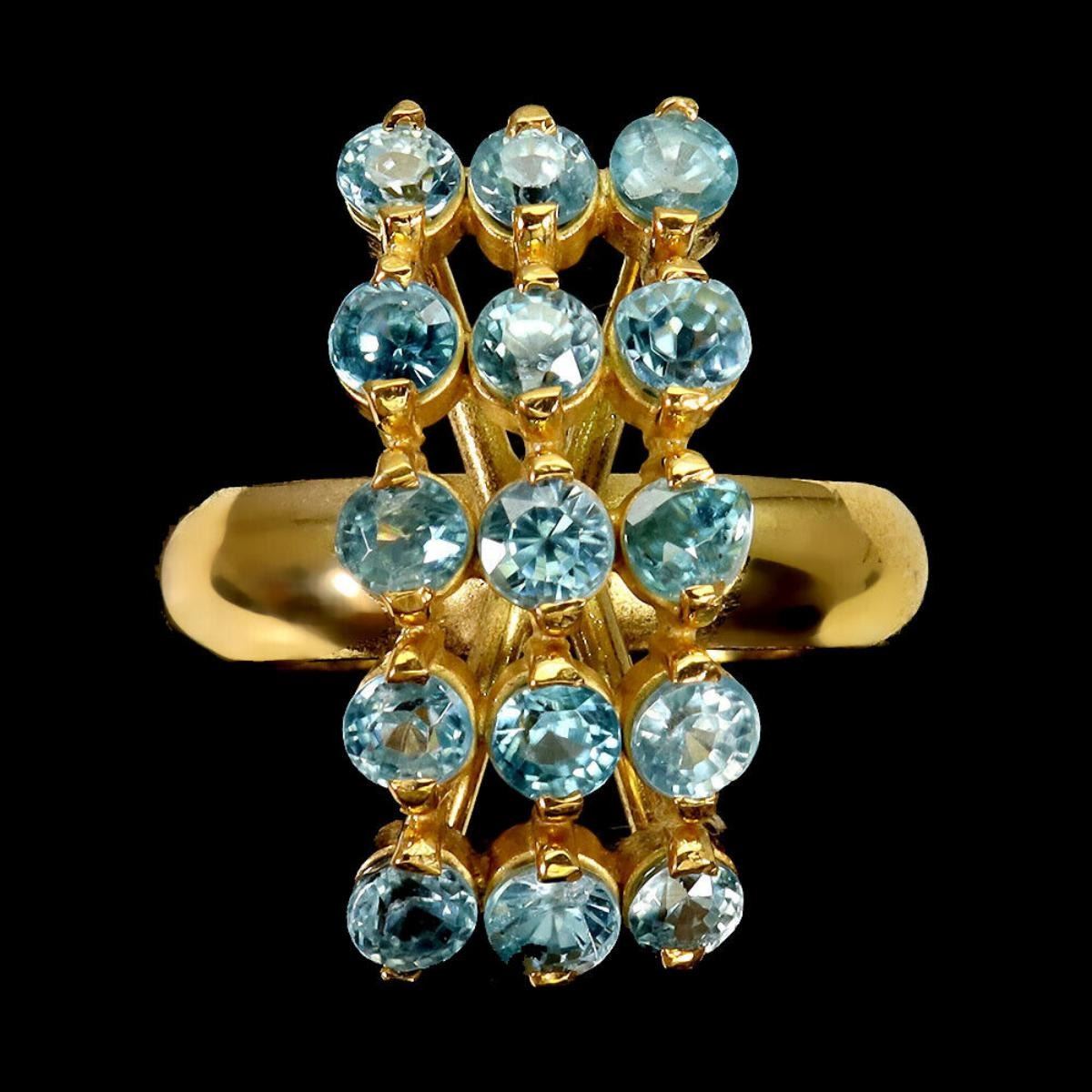 925 STERLING SILVER;PLATE-14K YELLOW GOLD;RING SIZE-10(RESIZABLE);MAIN STONE-BLUE ZIRCON;TOTAL WEIGHT-7.42 GRAM (TOTAL WEIGHT OF SILVER + STONE);DIMENSION-* STONE 3.5 MM. * RING SIZE 10.0 * FACE RING 24.0 X 11.0 MM.;MAIN STONE SHAPE-ROUND; MAIN STONE COLOR-SEAFOAM BLUE;CLARITY/GRADE-IF TO VVS;ORIGIN-CAMBODIA;HARDNESS-7;