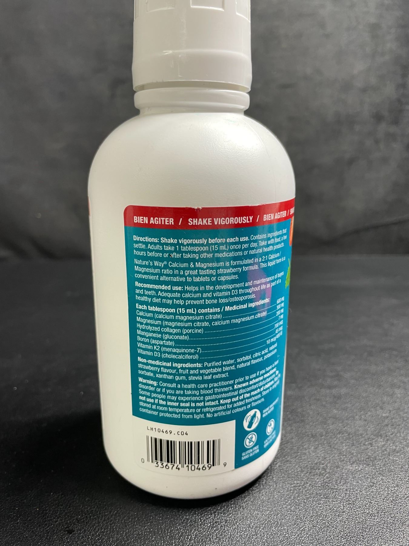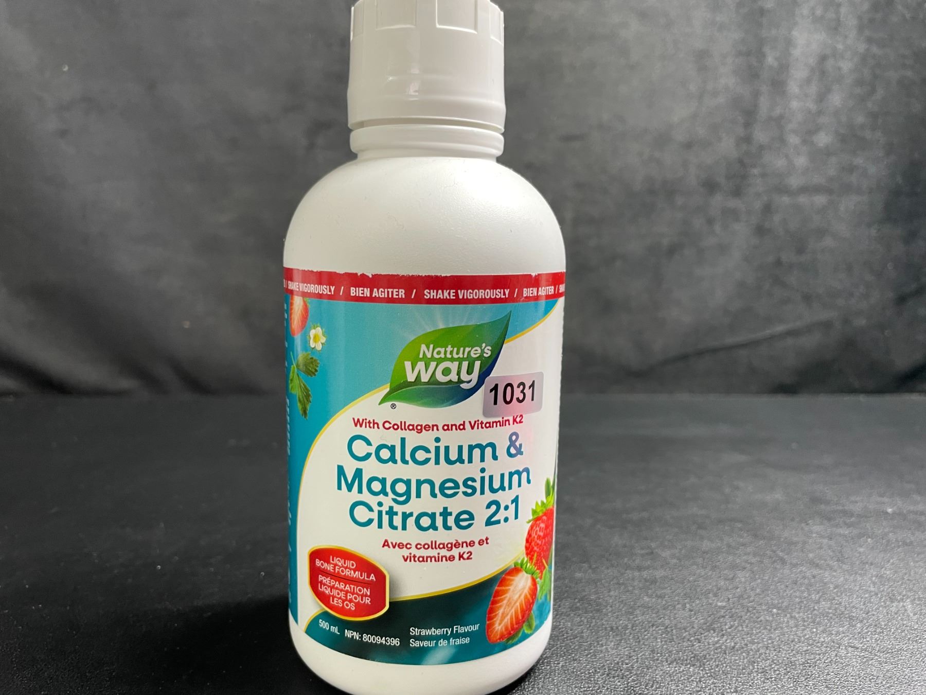 - Nature's Way Calcium & Magnesium Citrate 2:1 with Vitamin K2 & Collagen in Strawberry Flavor