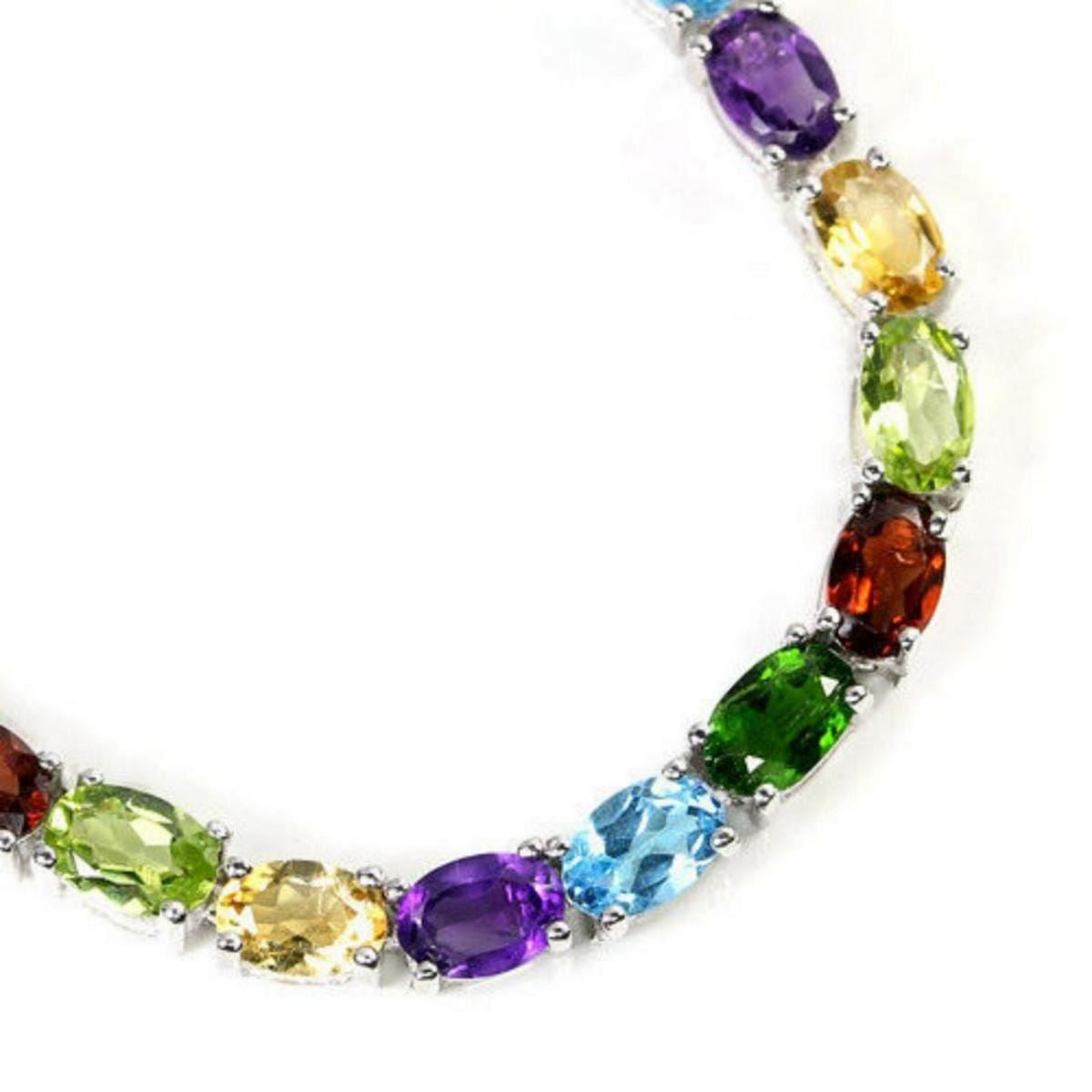 REAL GARNET TOPAZ PERIDOT CITRINE 925 SILVER BRACELET 14K WHITE GOLD COATING; LENGTH OF ITEM (Inch.)7.75 ( RESIZE : NO )ITEM QUANTITY1STONE SHAPEOVAL PORTUGUESE CUTSTONE DIMENSION6 X 4 MM.ITEM WEIGHT9.08 GRAMCOLORMULTI COLORCLARITYIF - VVSLUSTERDAZZLINGTREATMENTUNHEATED & IRRADIATIONORIGIN OF STONEBRAZIL, AFRICA & ASIAHARDNESS6.5 - 8.0
