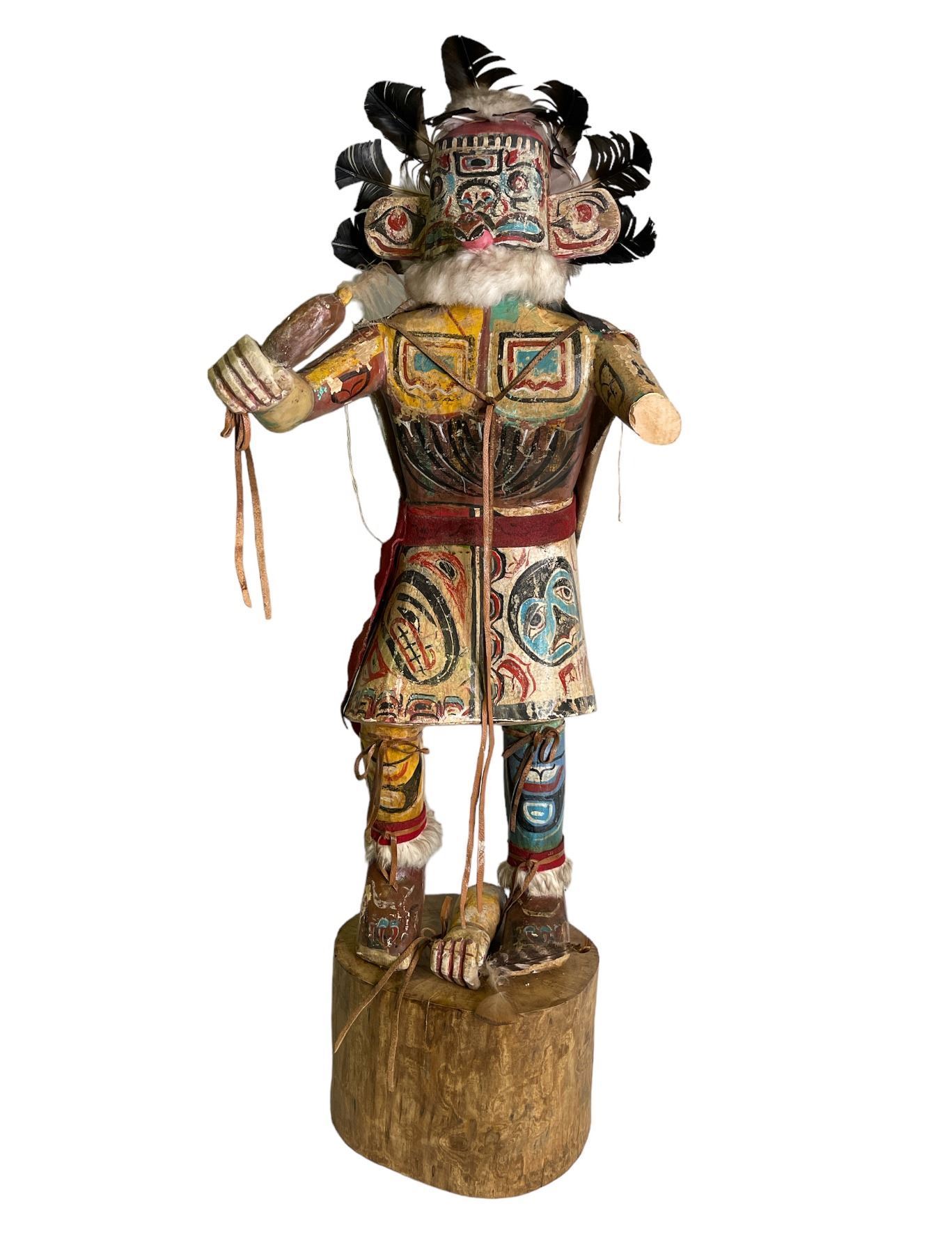 Navajo Guard Kachino wood carved doll from movie set - approx. 41in tall x 15in wide x 13in depth (1 arm chopped off) art auction