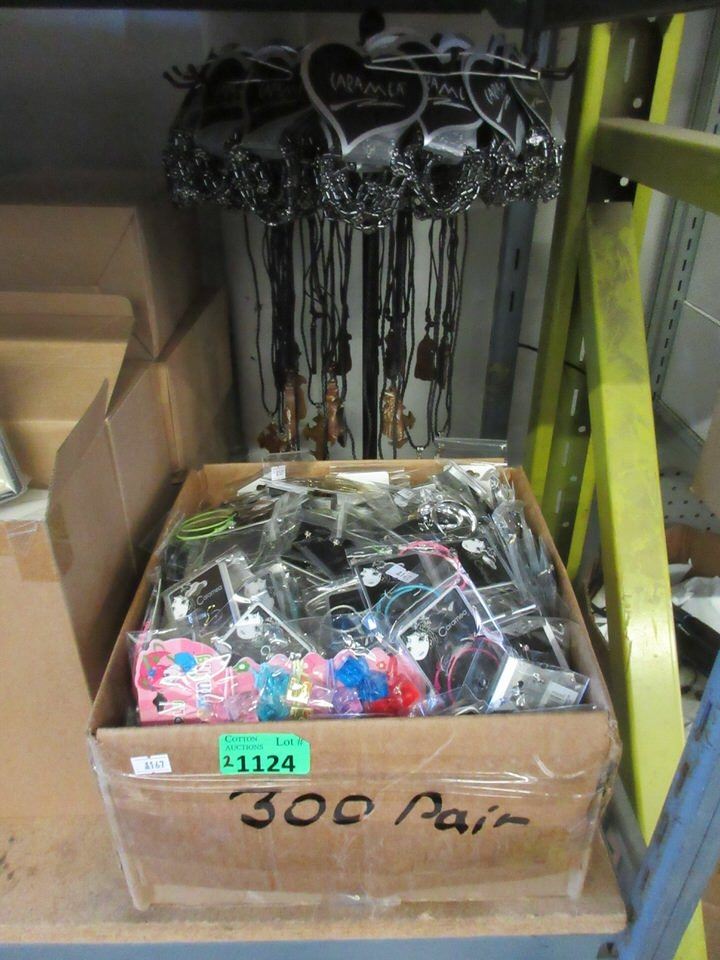 Rotating necklace stand containing assorted necklaces & bracelets. Includes box of fashion earrings and hair accessories