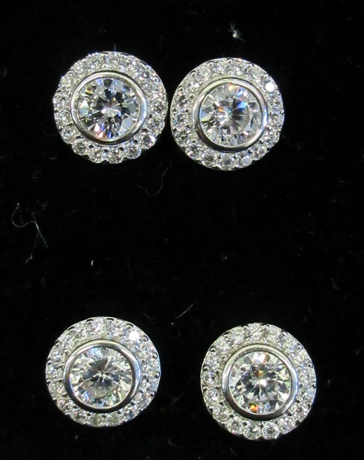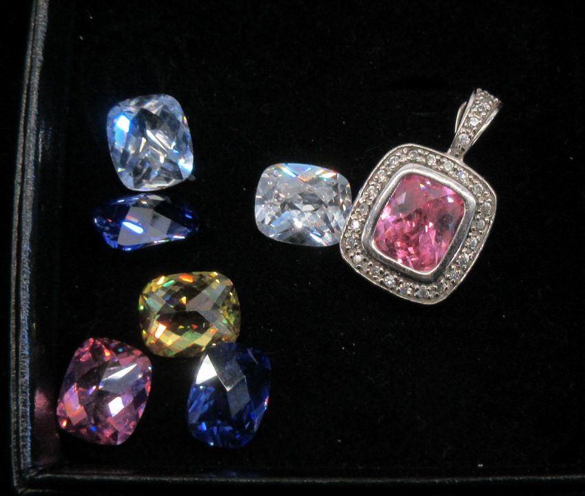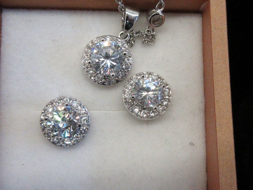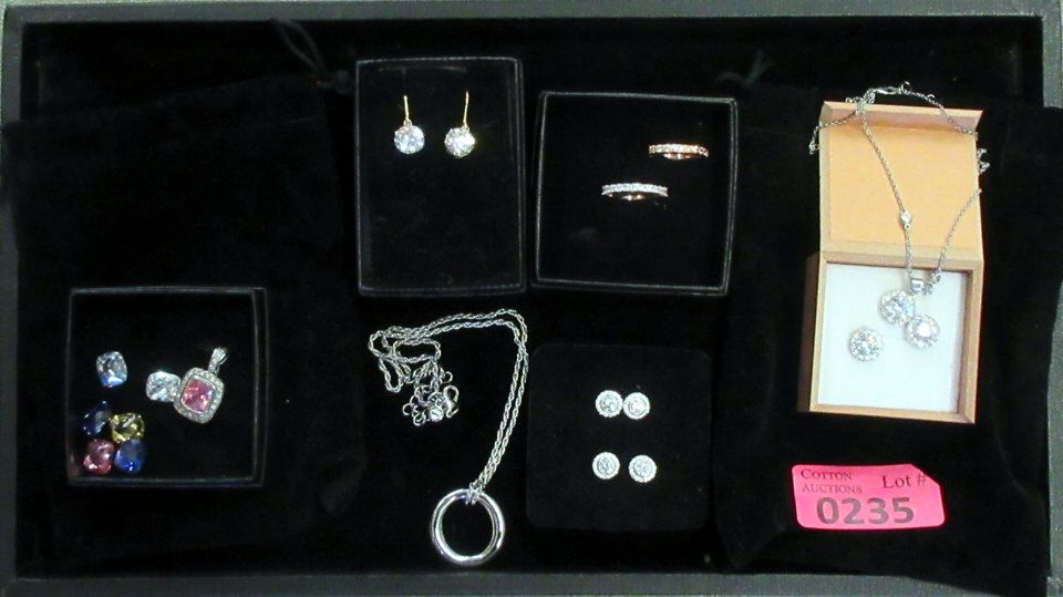 Post earrings & pendant set, 2 matching pairs of stud earrings, 2 gold plated .925 rings {size 8}, drop earrings and enhancer pendant with interchangeable center stones.