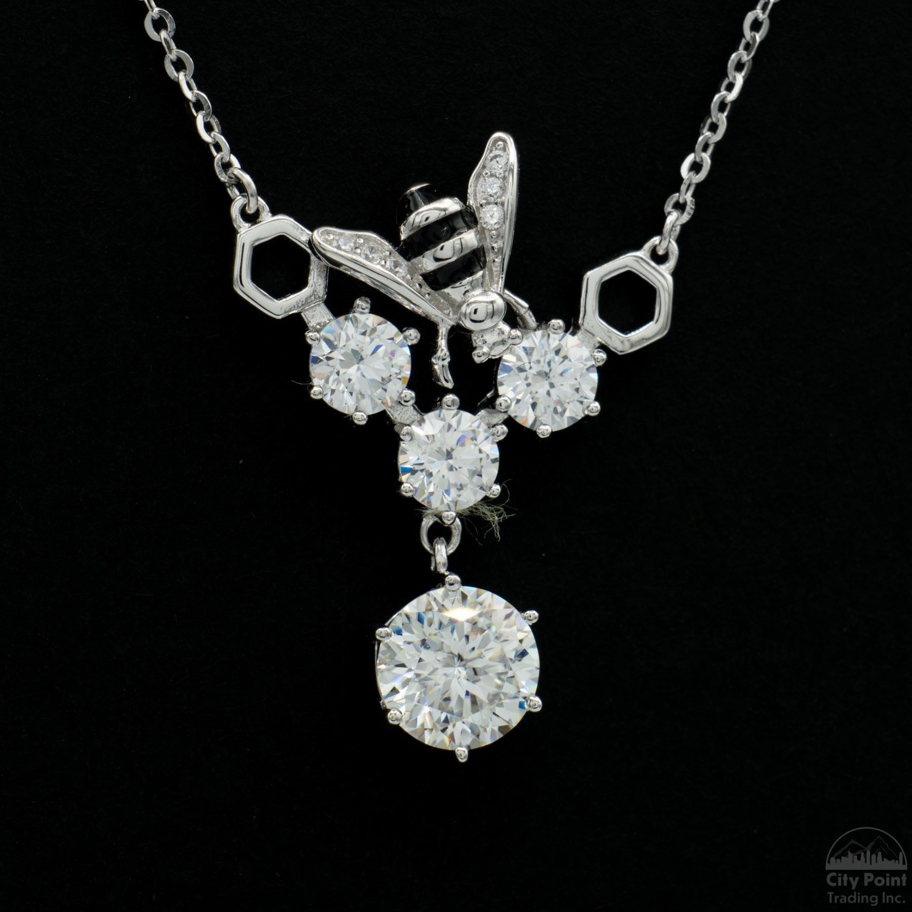 One stamped S925 platinum-plated sterling silver necklace weighing 2.39 grams, featuring a pendant with a single prong-set round cut moissanite main stone, approximately 0.80 carat, accompanied by three additional prong-set round cut moissanite stones, each approximately 0.25 carats. Condition is new. Comes with a box, pouch, and display box.