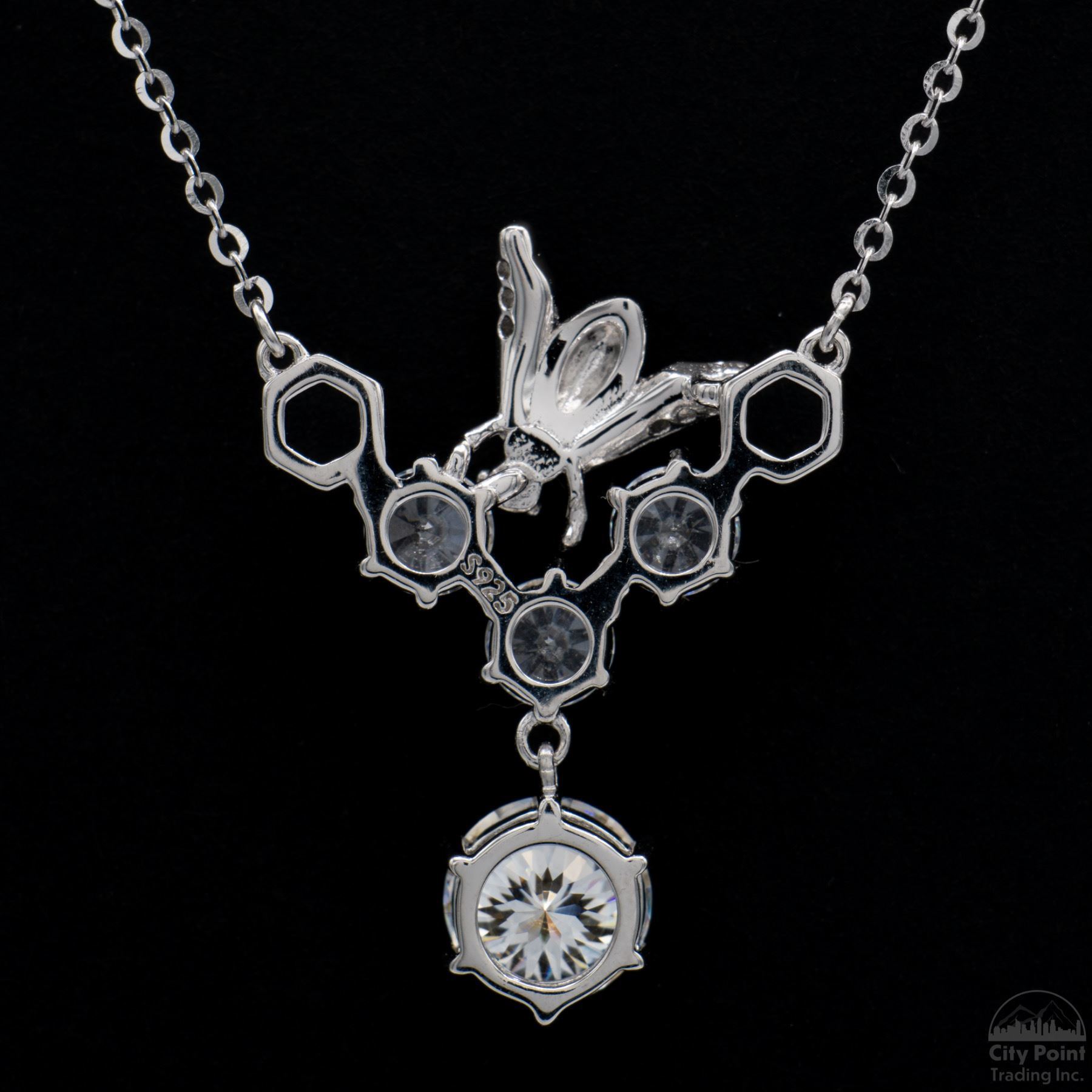 One stamped S925 platinum-plated sterling silver necklace weighing 2.39 grams, featuring a pendant with a single prong-set round cut moissanite main stone, approximately 0.80 carat, accompanied by three additional prong-set round cut moissanite stones, each approximately 0.25 carats. Condition is new. Comes with a box, pouch, and display box.